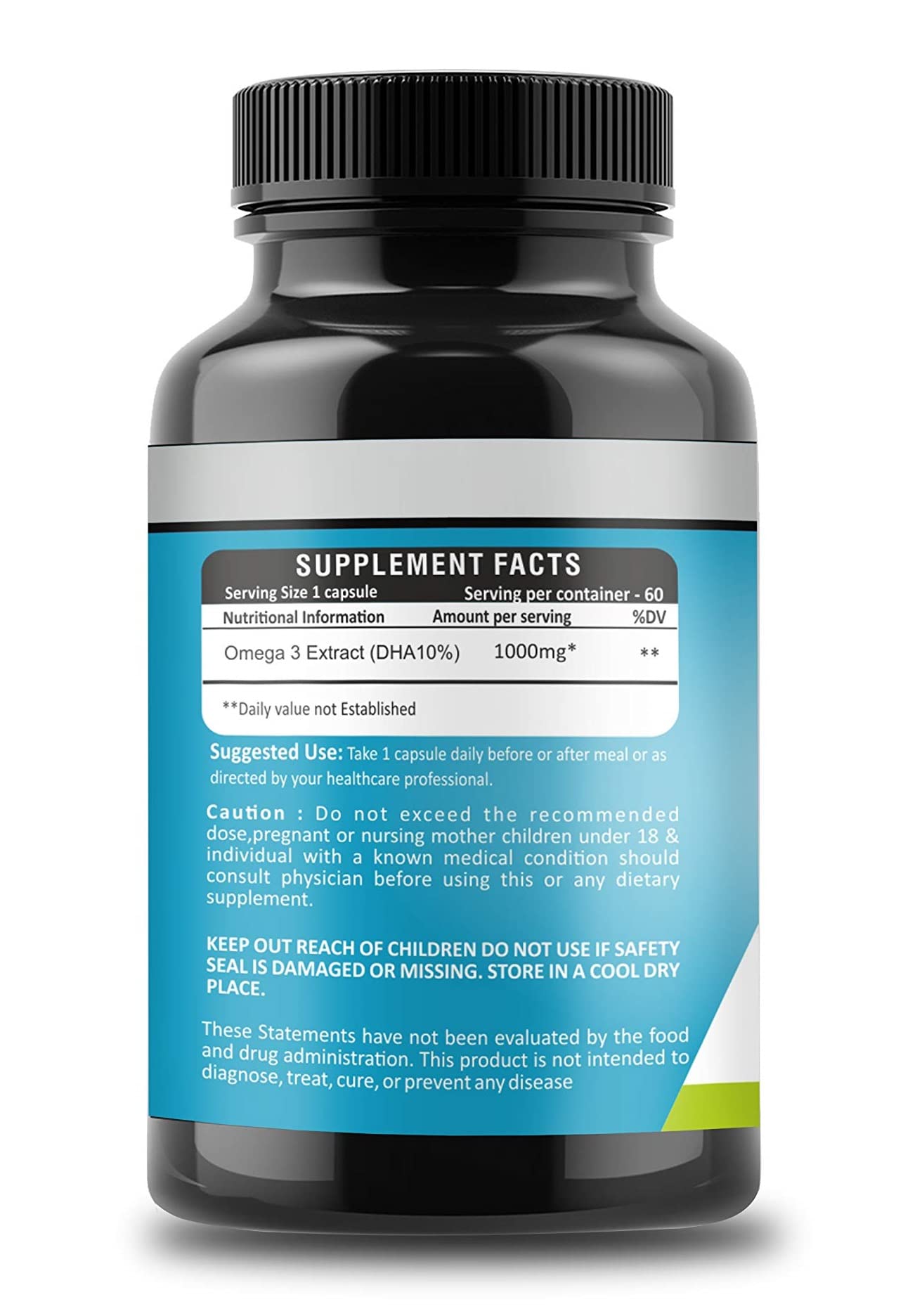 Vegan Omega 3 DHA Supplement - DHA Fatty Acids - Fishless, Cruelty-Free, Burpless, Tasteless - Plant Based 60 Capsules