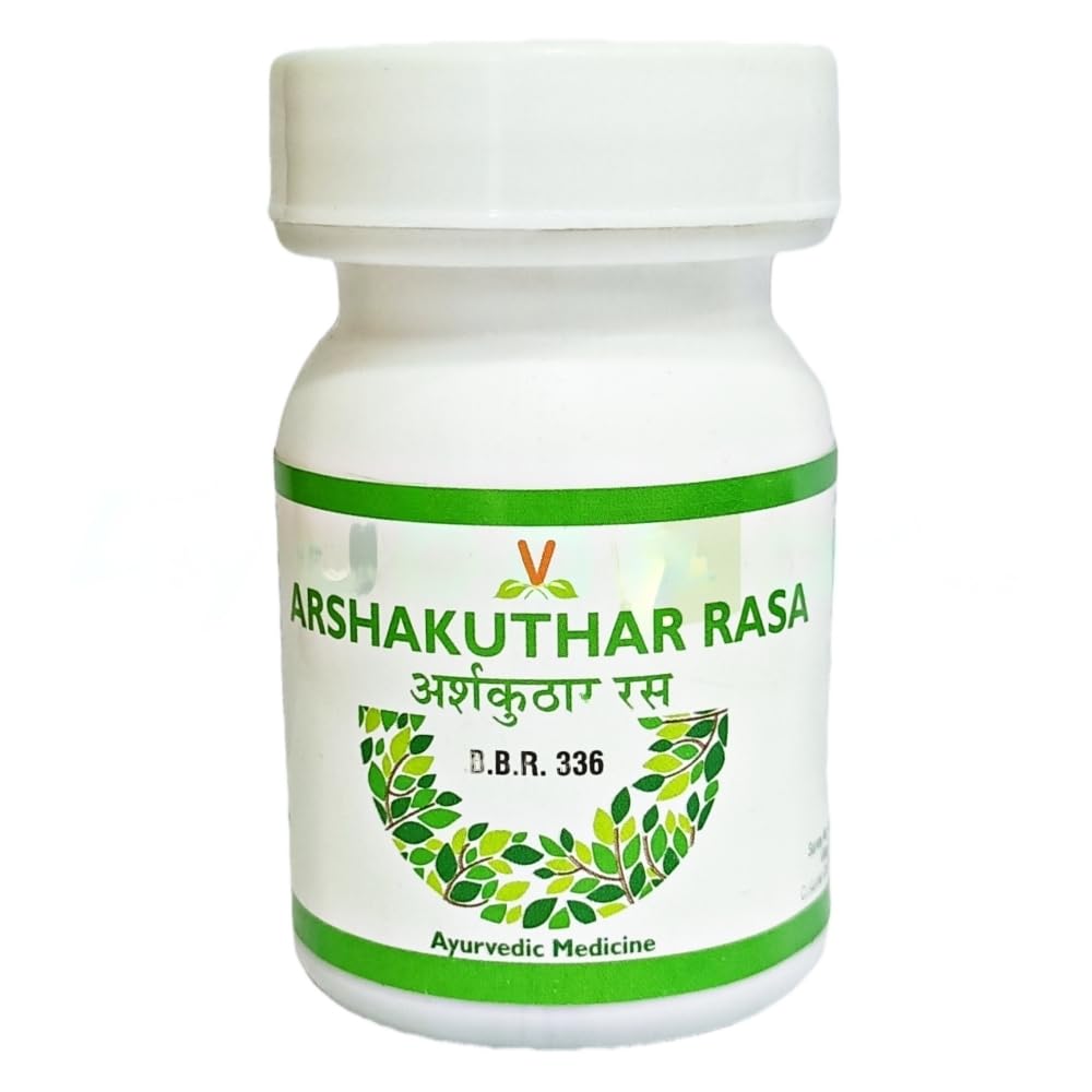 ArshKuthar Ras is an Ayurvedic medicine in tablet form. It is a Ras Aushadhi of Ayurveda. Mercury is known as Rasa in Ayurveda and medicines that are prepared using purified mercury purified Sulphur bhasma etc. are named Ras aushadhi (Mercurial Preparations). In preparation of Ras aushadhi/medicine first Kajjali is made from purified parad and gandhak. As these medicines contain heavy metals it is better to take them as prescription drugs. In preparation of Ras aushadhi/medicine first Kajjali is made from purified parad and gandhak. As these medicines contain heavy metals it is better to take them as prescription drugs.