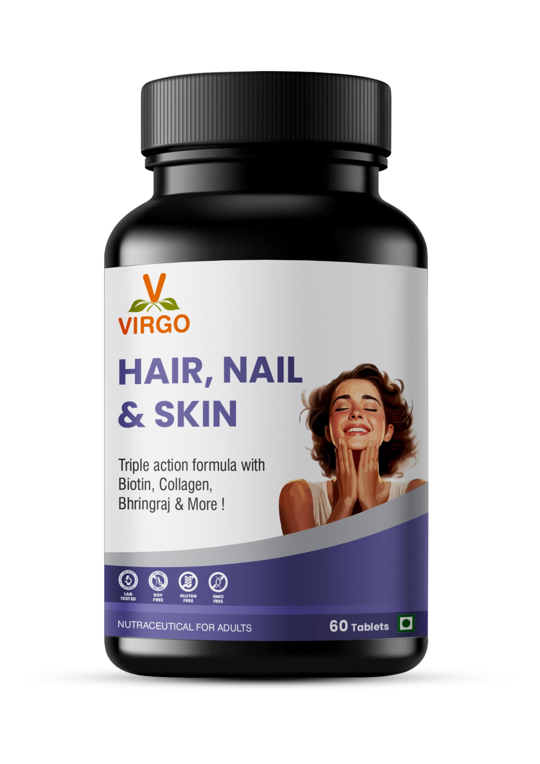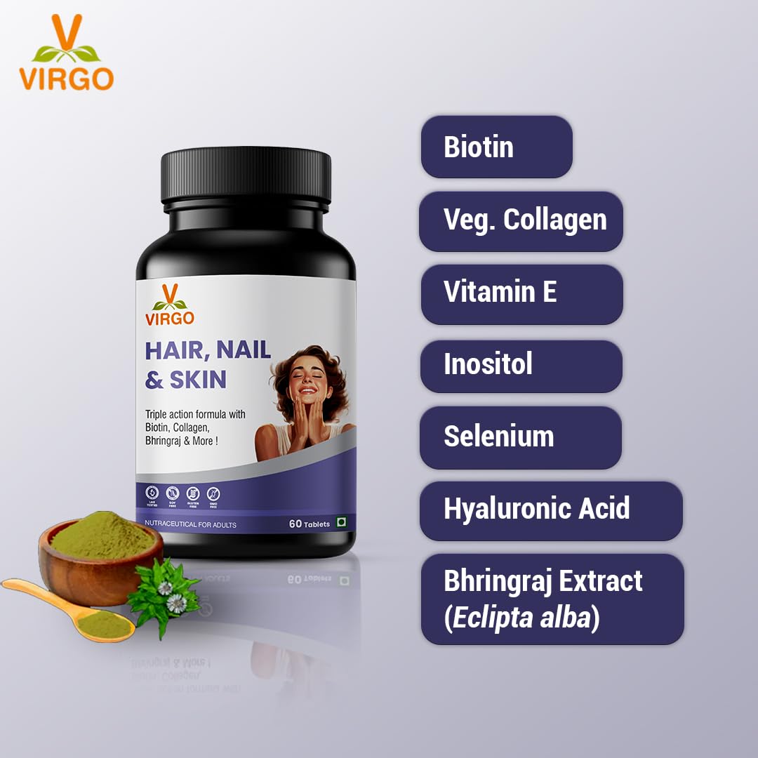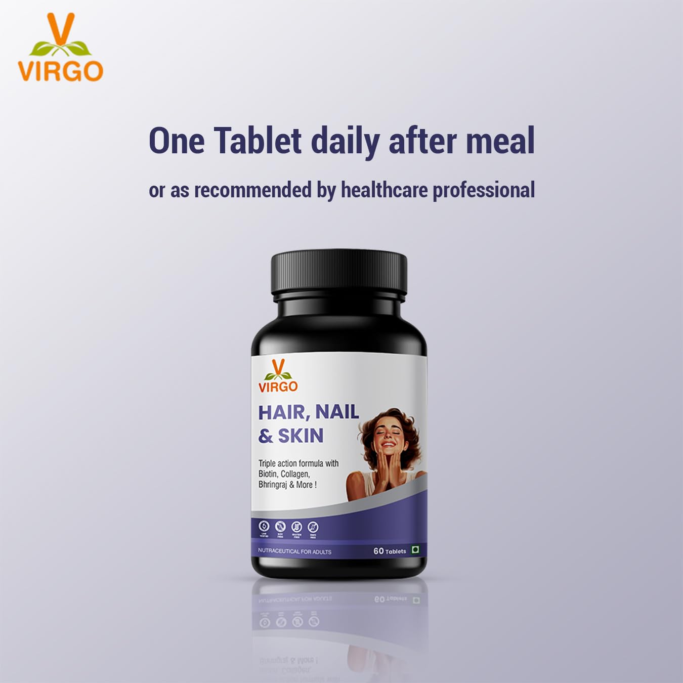 Virgo Uap Pharma Hair Nail & Skin Care (Veg.Biotin Collagen & Bhringraj) Tablets