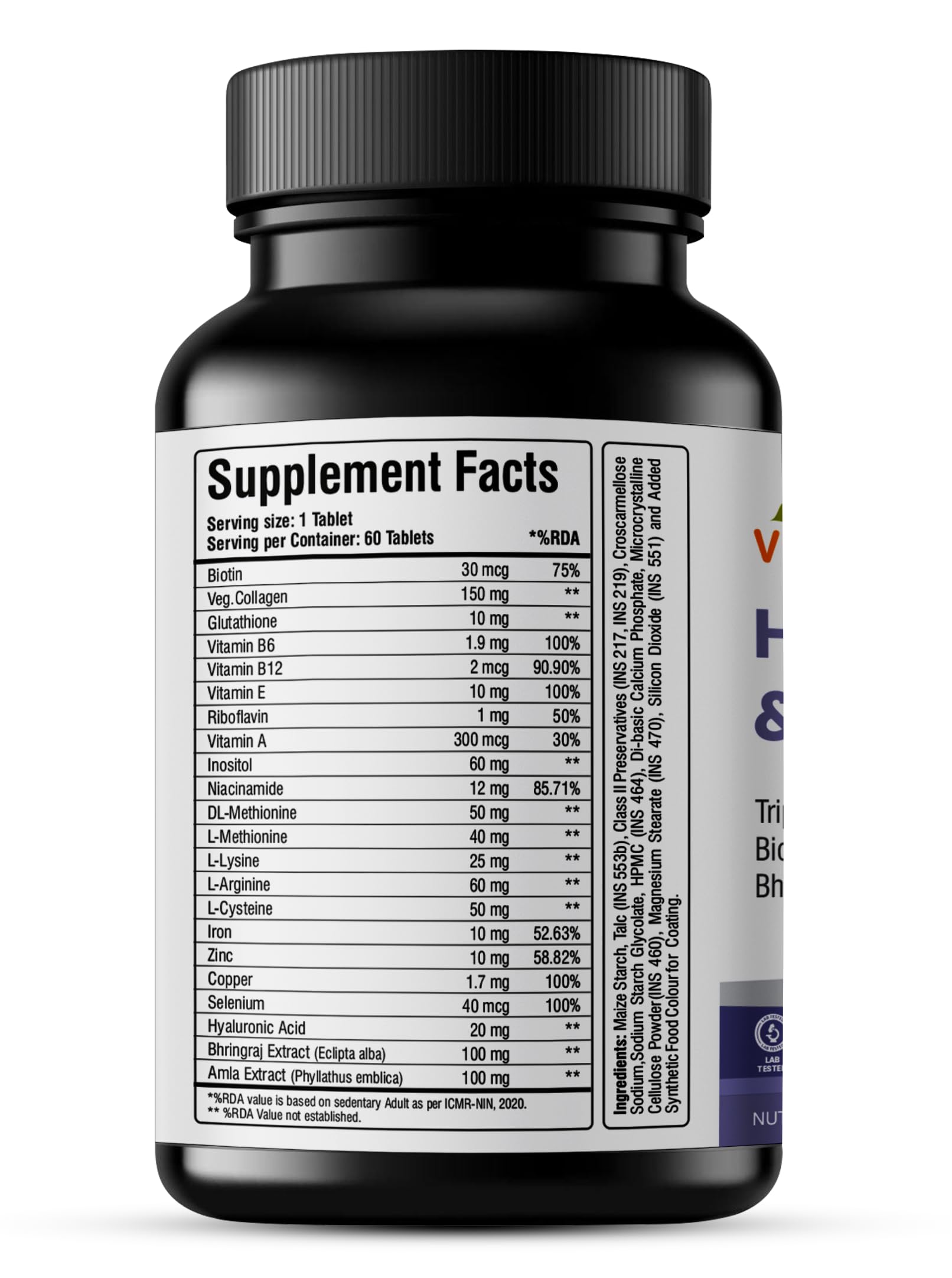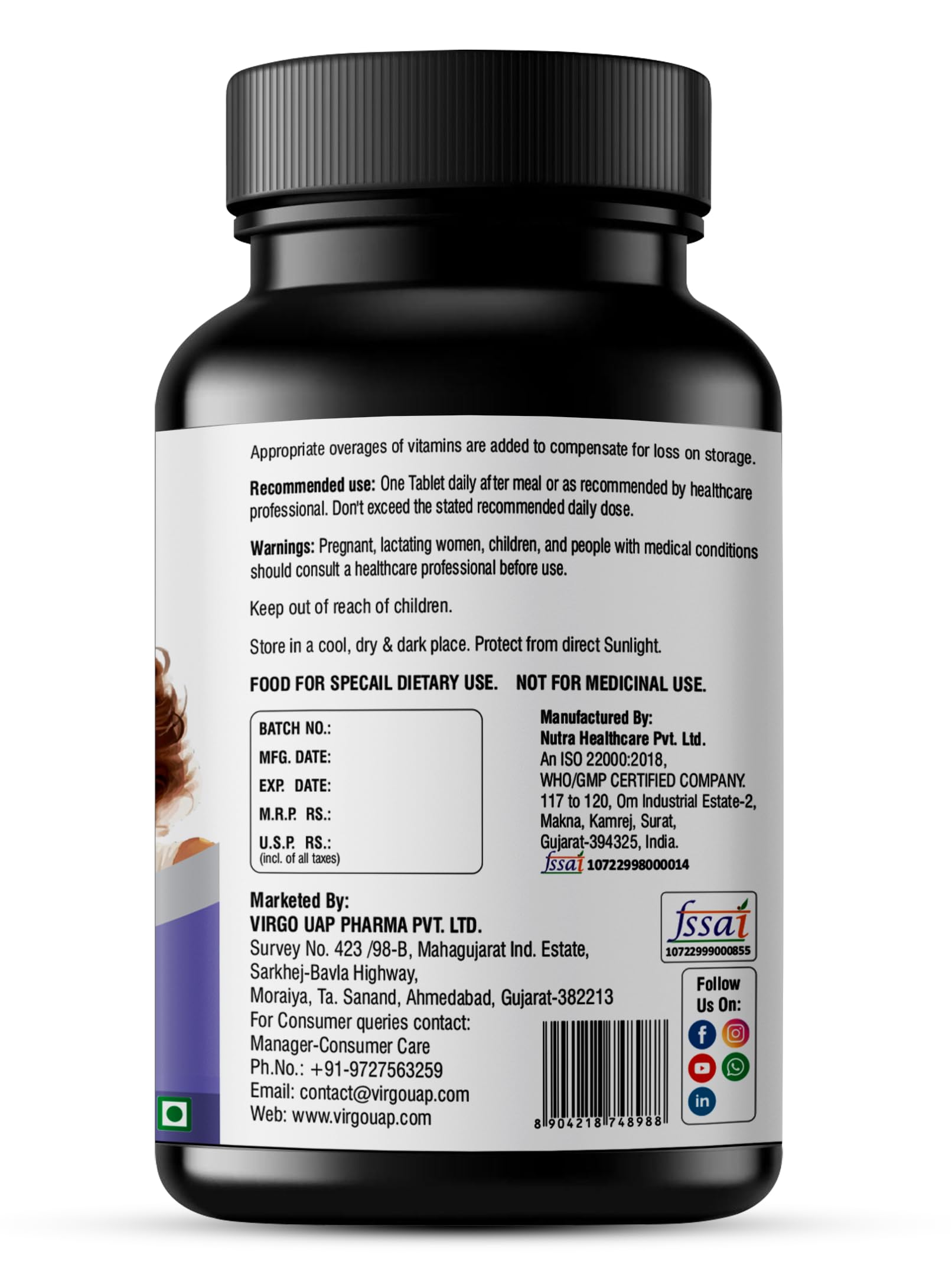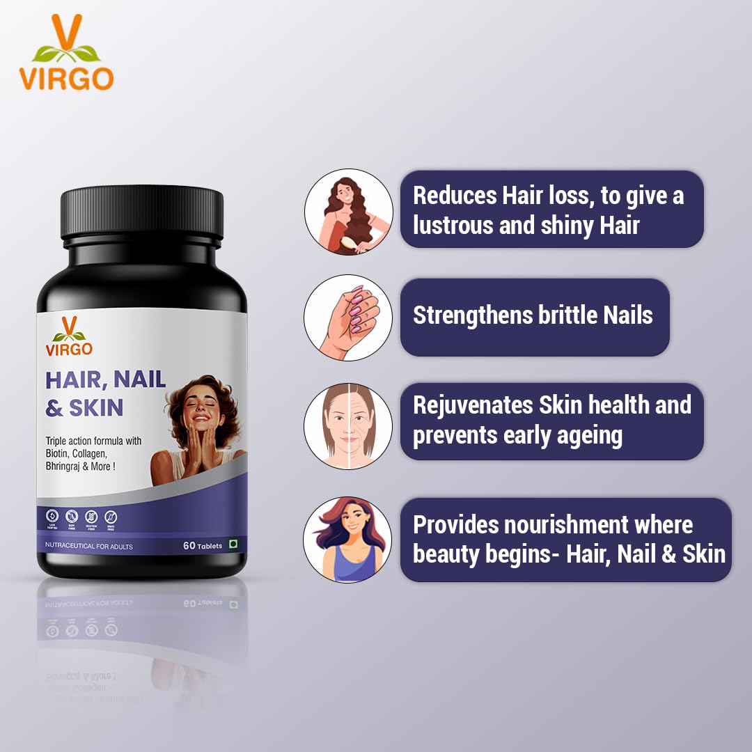 Virgo Uap Pharma Hair Nail & Skin Care (Veg.Biotin Collagen & Bhringraj) Tablets