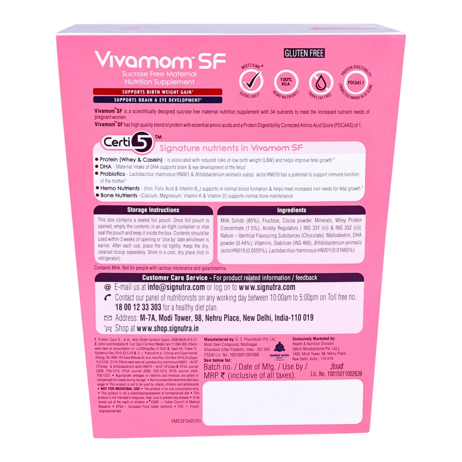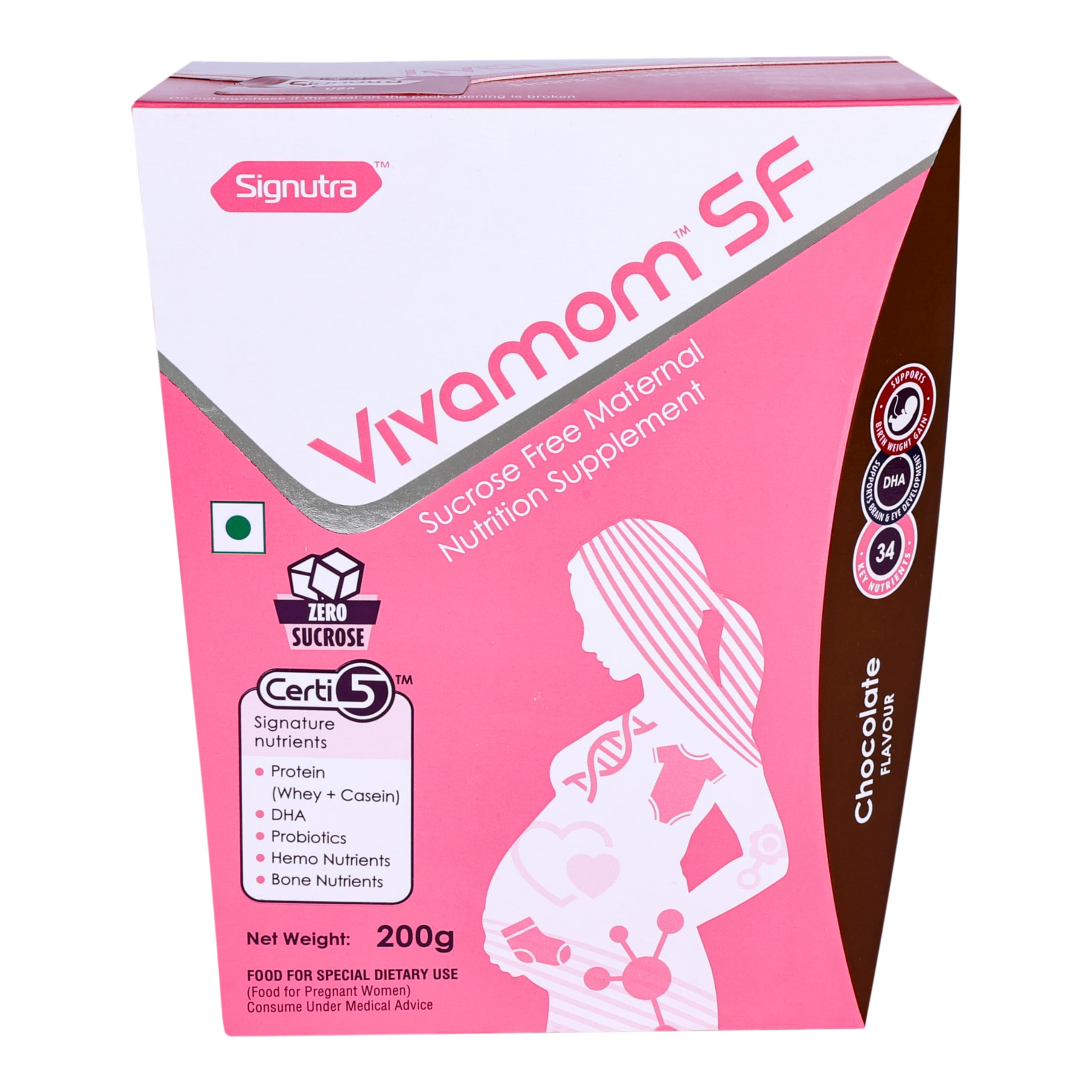 • Vivamom SF is Scientifically formulated Sucrose Free Maternal Nutrition Supplement with 34 Nutrients to meet the increased Nutrient needs of a pregnant women.