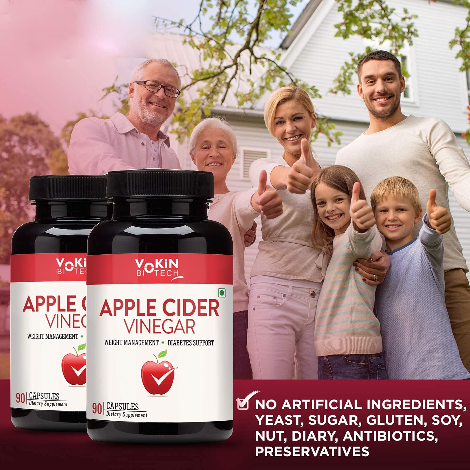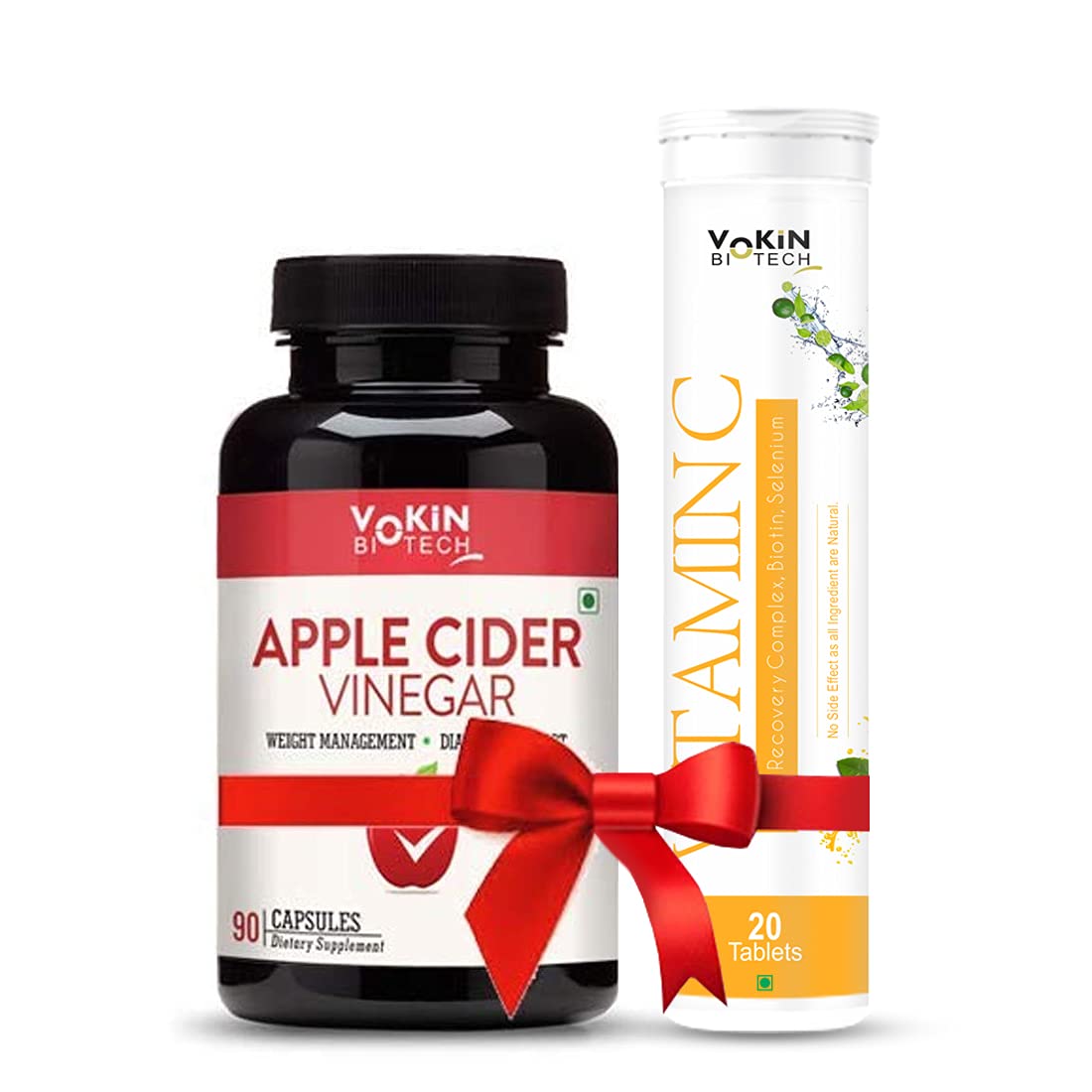 Vokin Biotech Apple Cider Vinegar For Weight Loss & Improves Immunity 90 capsules With Exclusive Vitamin C Orange Flavor Effervescent Water Soluble 20 Tablets Free