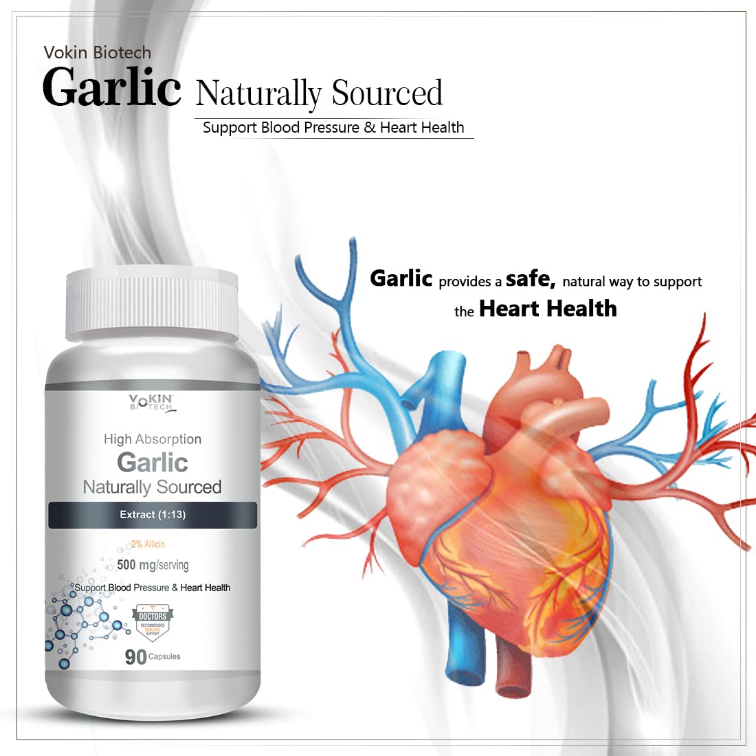Vokin Biotech Garlic Extract 1:13 Allium Sativum - 500mg Support Blood Pressure and Heart Health (90 Capsules)