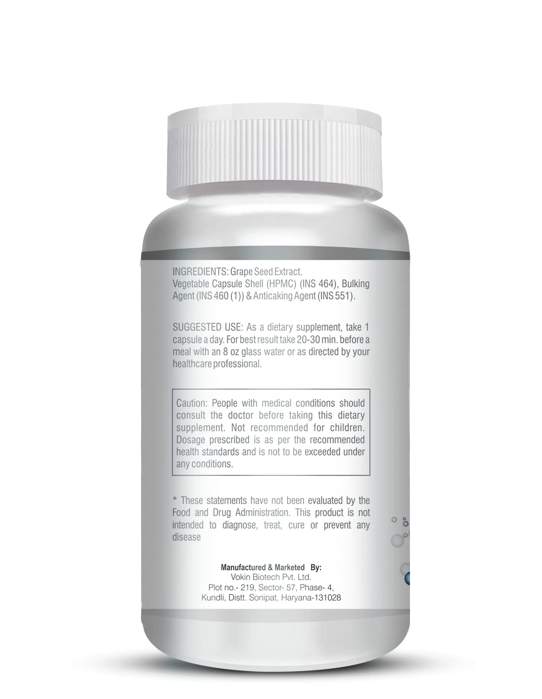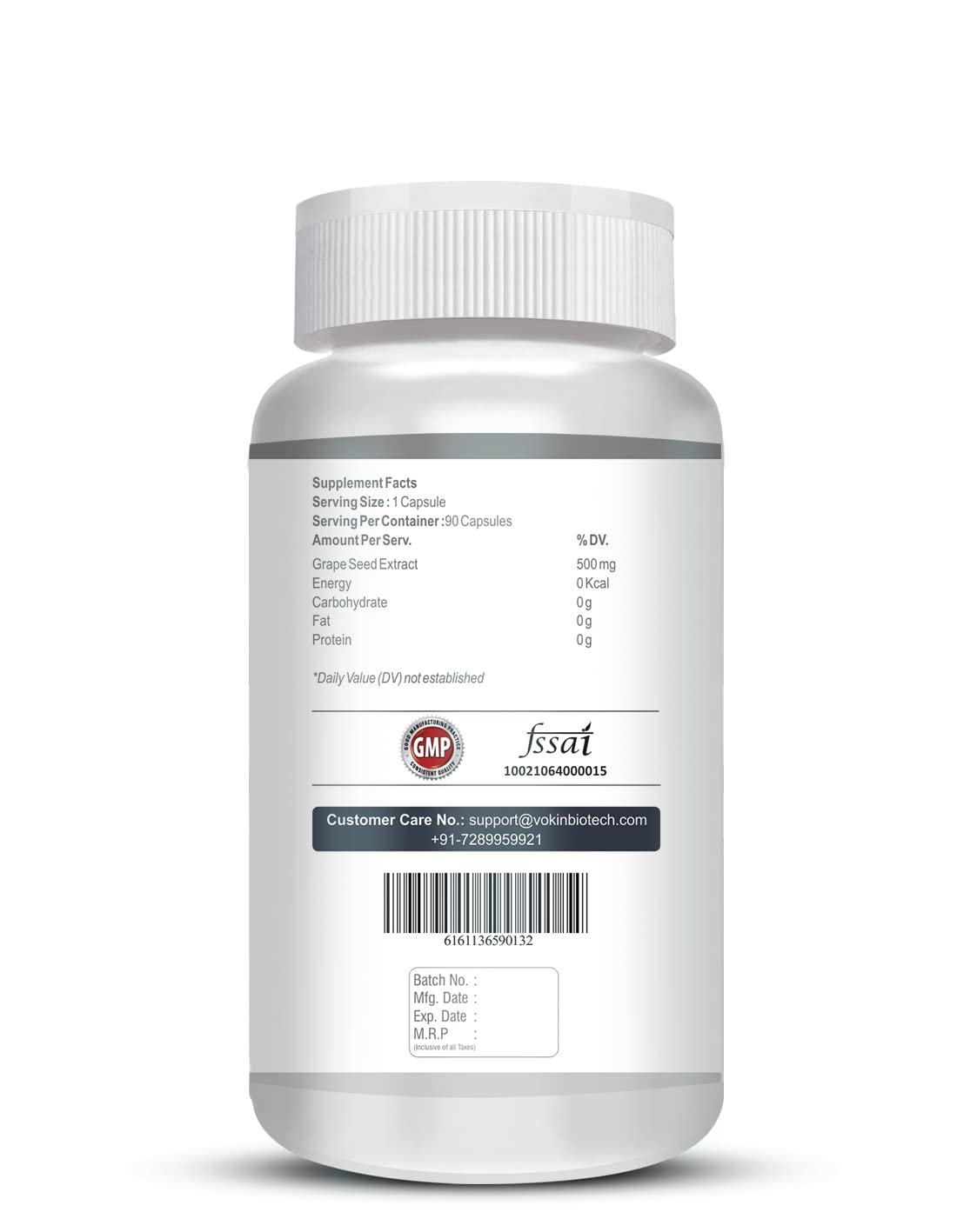 Vokin Biotech Grape Seed Extract | 500 mg | 95% Polyphenols | Support Heart Health 90 capsule