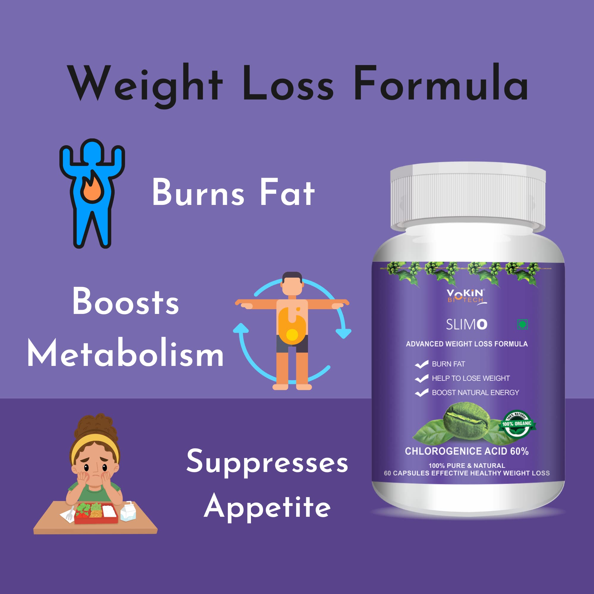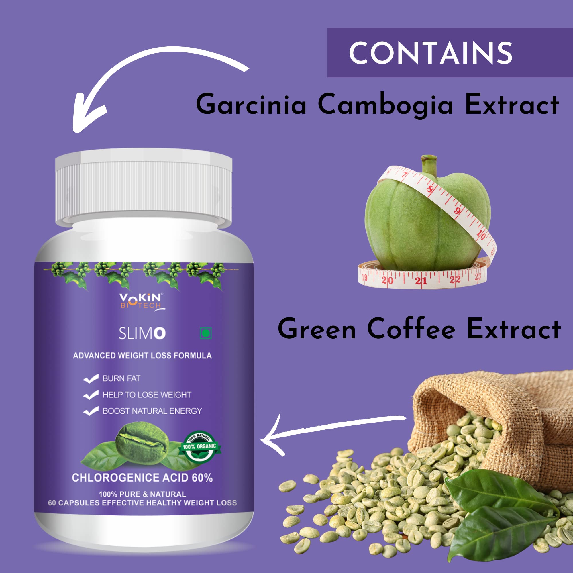 Vokin Biotech Slimo Advanced Weight Loss Formula with Green Coffee Extract 100mg and Garcinia Cambogia Extract 500mg Fat Burner for Men and Women (60 Capsules)
