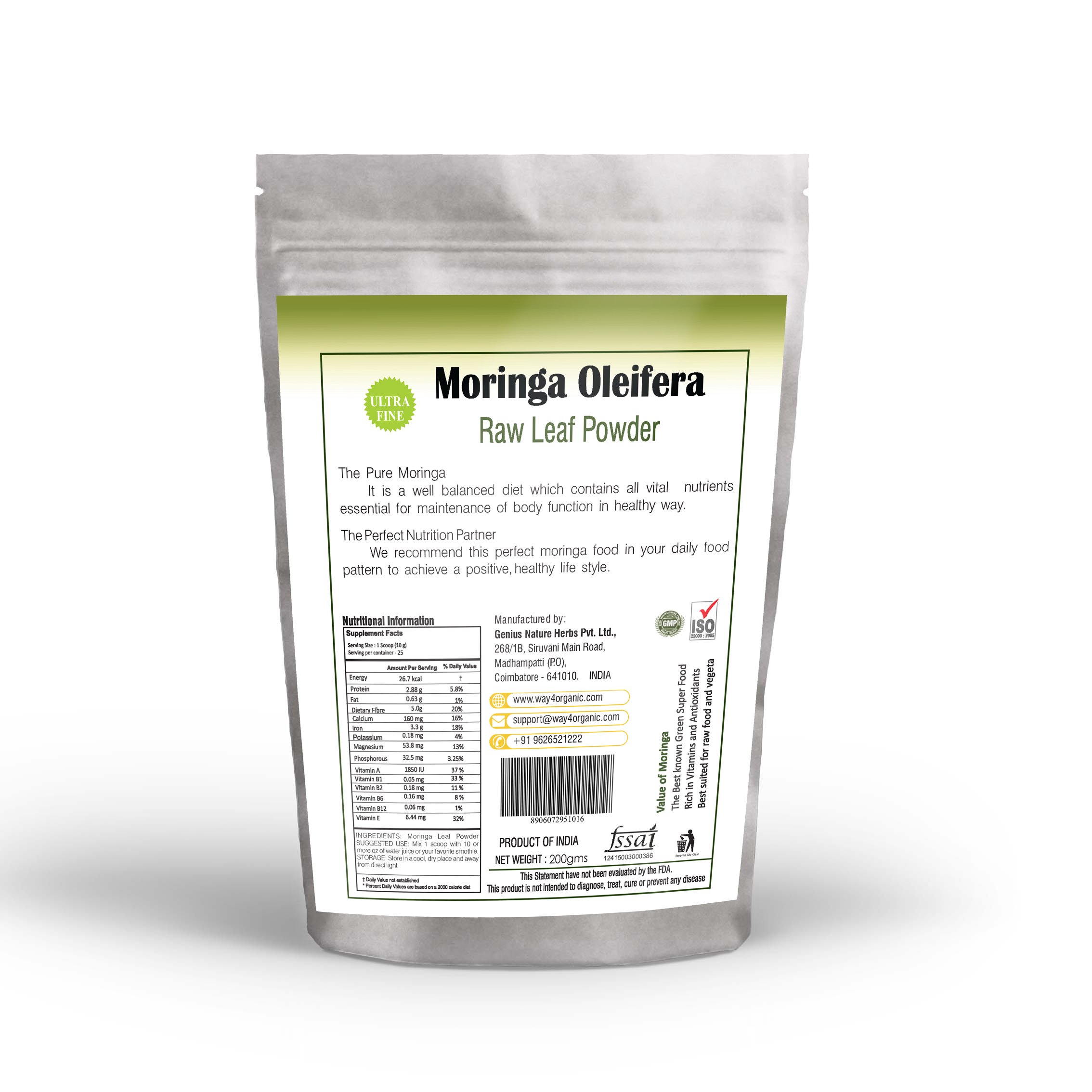 Way 4 Organic Organic Moringa Leaf Powder -200 G 100% Pure And Natural Raw Super Food Supplement.Non Gmo. Gluten Free