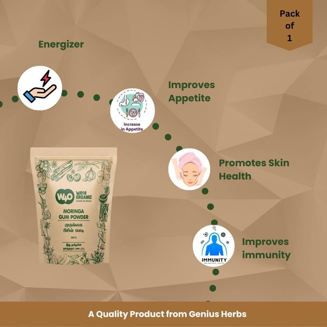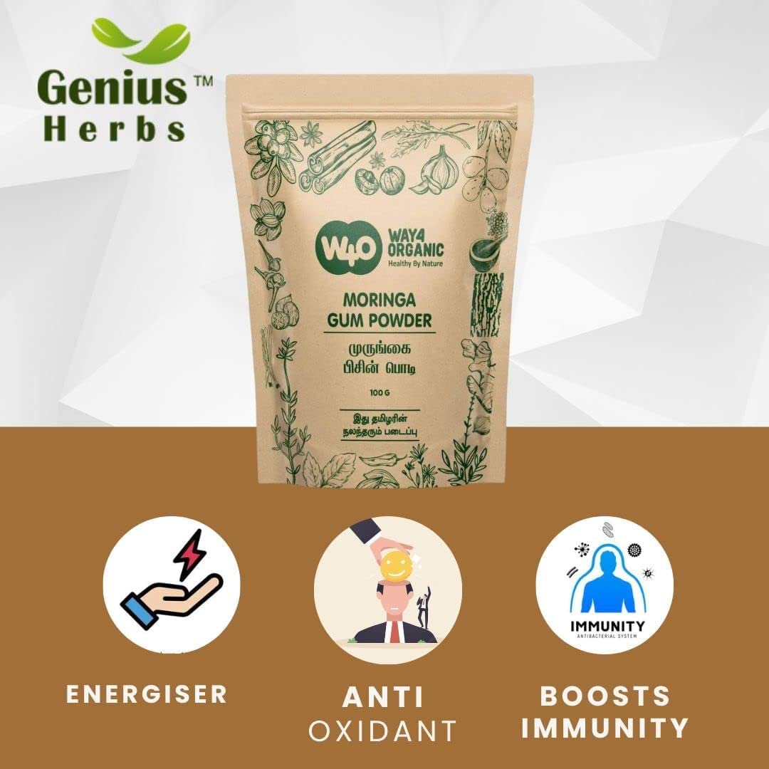 WAY 4 ORGANIC W4O Moringa Gum Powder/Murungai Pisin Podi/Sahajan Gum Powder/Drumstick tree resin/Sahajan Gond 100 g
