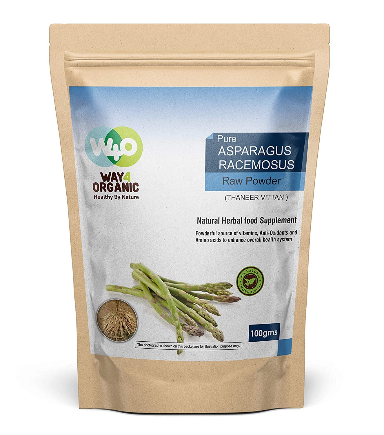 WAY 4 ORGANIC W4O Pure Shatavari (Asparagus Racemosus) Raw Powder - 100g Brown