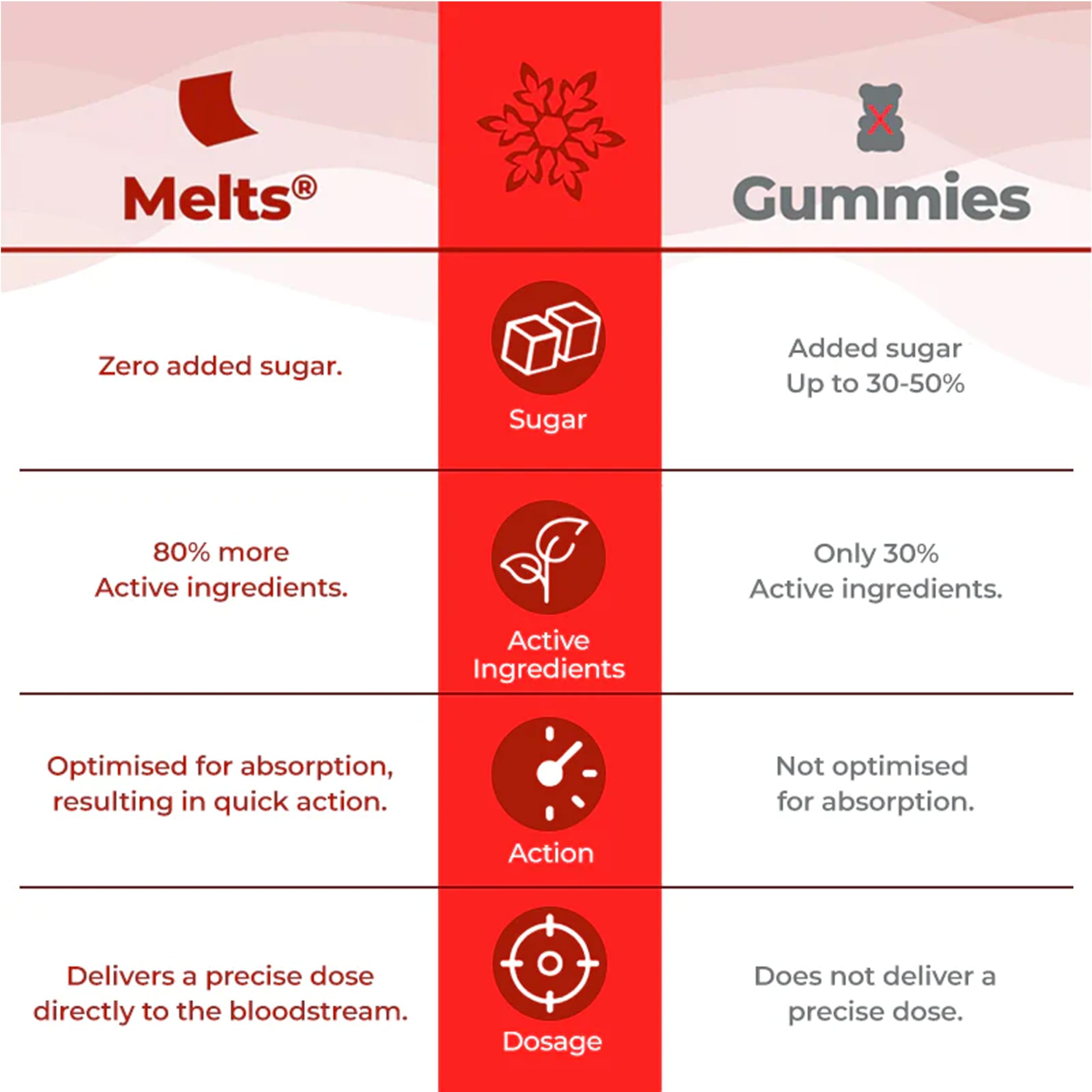 Melts immediately ! Great berry taste ! Awesome after taste.