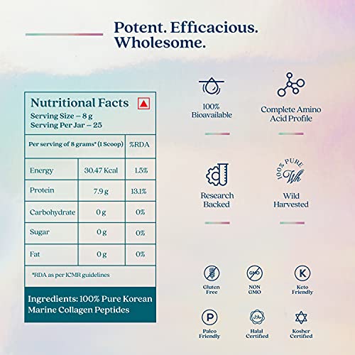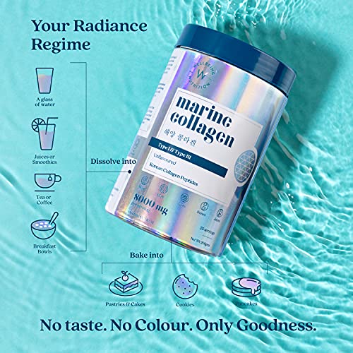 100% PURE - Wellbeing Nutrition Platinum grade Korean Marine Collagen Peptides are sourced from wild-caught fish Unflavored easy to mix and enzymatically processed to keep the peptides intact.Single ingredient from a transparent and sustainable source. Hy