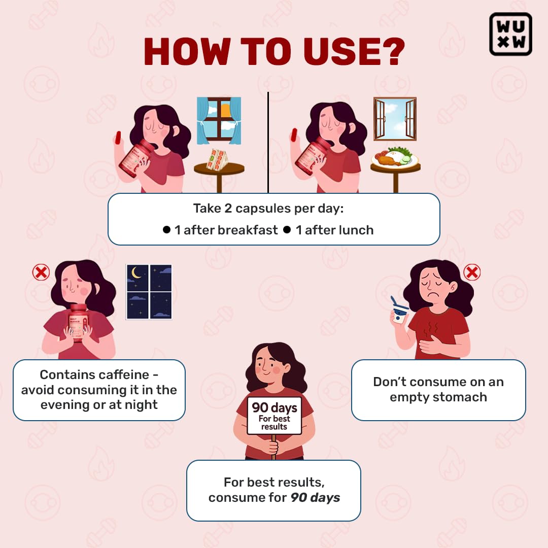 ENERGY & METABOLISM SUPPORT: With organic caffeine Daily Burner by What's Up Wellness provides a sustained energy release to help you stay focused and active throughout the day. Capsimax enhances thermogenesis aiding in excessive calorie burning and metab