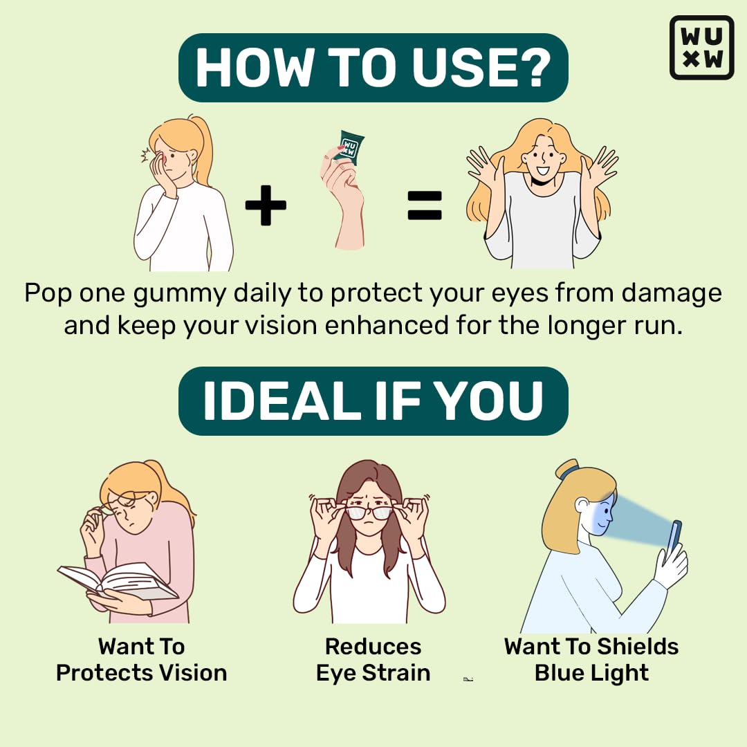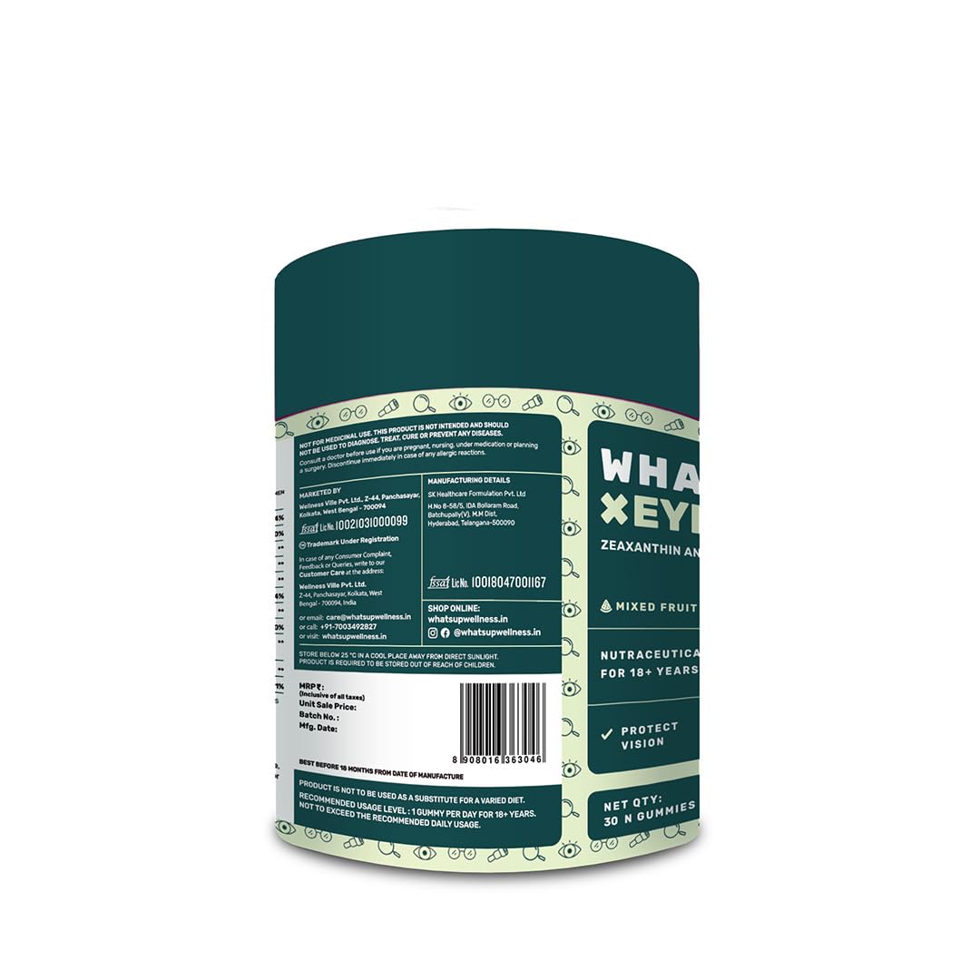 What's Up Wellness Eye Health Gummies To Maintain Eye Health | Zeaxanthin 4mg Helps Shield Blue Light | Formulated with Vitamin A Vitamin E Lutein and Ginkgo Biloba | 30 Days Pack (30 Gummies)