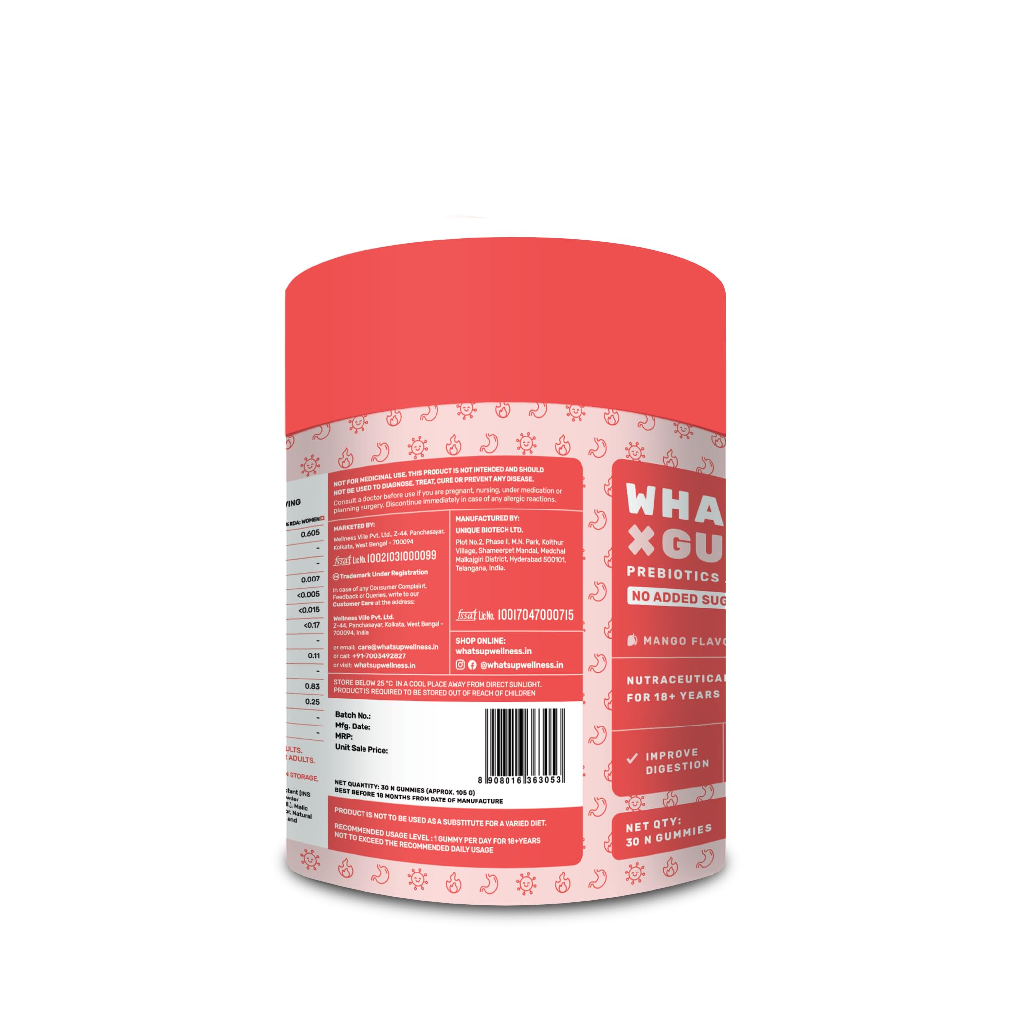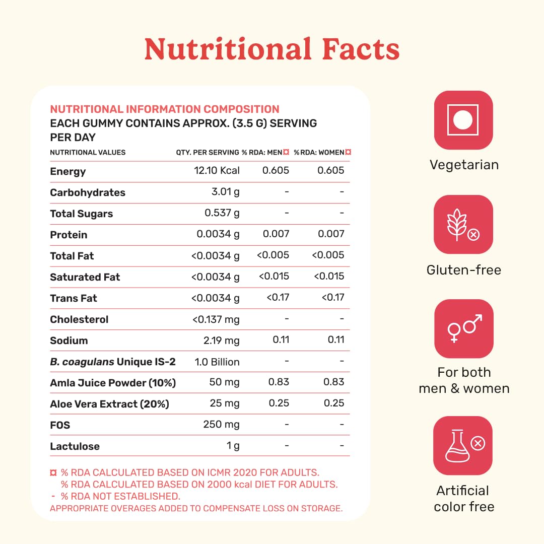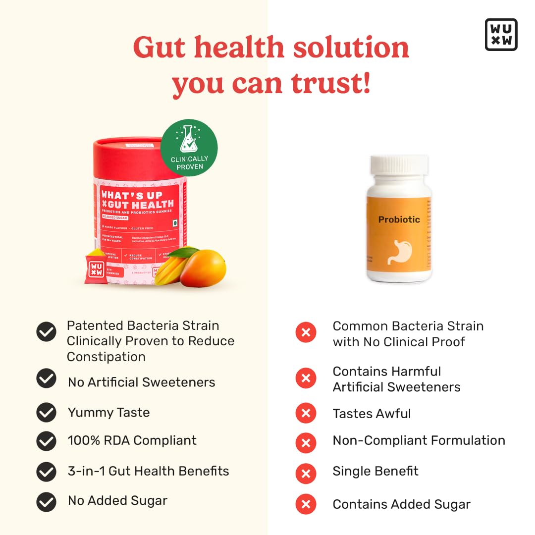What's Up Wellness Gut Health Supplements Gummies | Prebiotics & Probiotics Supplement | Constipation Bloating Gas & Acidity Relief | Immunity | Clinically Proven Strain | 30 Days (Pack Of 1)