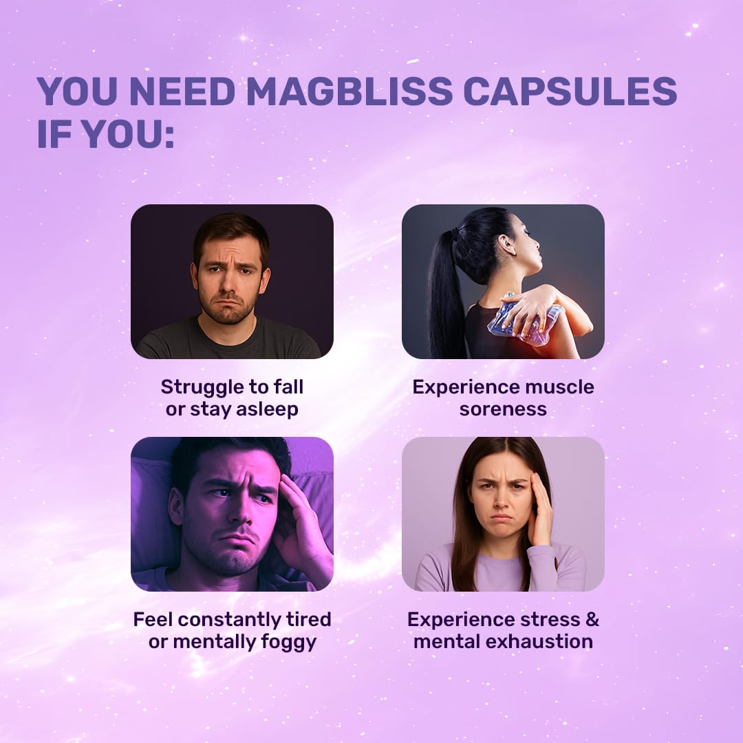 What's Up Wellness MagBliss | With Magnesium Bisglycinate Zinc & B6 | Sleep Stress & Recovery Support for Men & Women | High Absorption | 60 Capsules