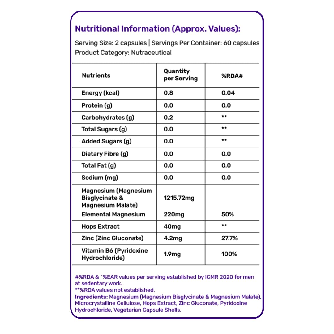 Promote Deep Sleep : Magnesium Bisglycinate and Hops Extract help calm your nervous system and improve sleep quality.