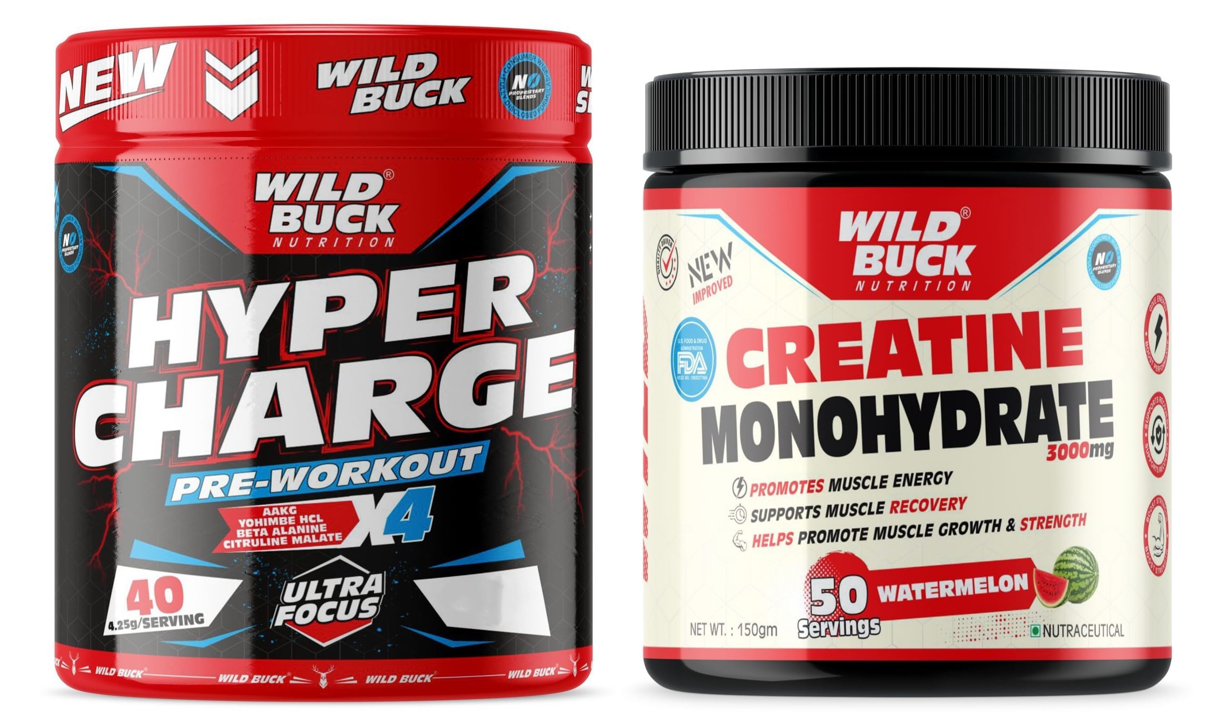 The WILD BUCK Hyper Charge X4 Pre-workout : Designed to elevate your energy focus power output and performance levels it will help you power through every training session and prime you for harder heavier and more productive lifts. With so many ingredients dedicated to powering up your results The WILD BUCK Pre-workout is in a league of its own. Stop leaving gains on the table. Start making the most of your workouts today with The WILD BUCK Pre-workout the lifting partner youâve been looking for. Serving: For Insane Workout - Take One Scoop with 150-200ml of water and drink 10-20 minutes before action. For Hardcore Workout - Take half Scoop with 150-200ml of water and drink 10-20 minutes before action. Creatine has become one of the most popular sports supplements among professional and amateur athletes. In the body creatine is converted to creatine phosphate which helps to fuel skeletal muscles and provides support for immediate energy products during high-intensity workouts. Creatine may very well be the single most heavily researched sports supplement available today. Creatine is a key nutrient that occurs naturally in the body and found in some foods. Creatine functions as an energy source in your muscle cells helping to increase strength and reduce fatigue during intense training.