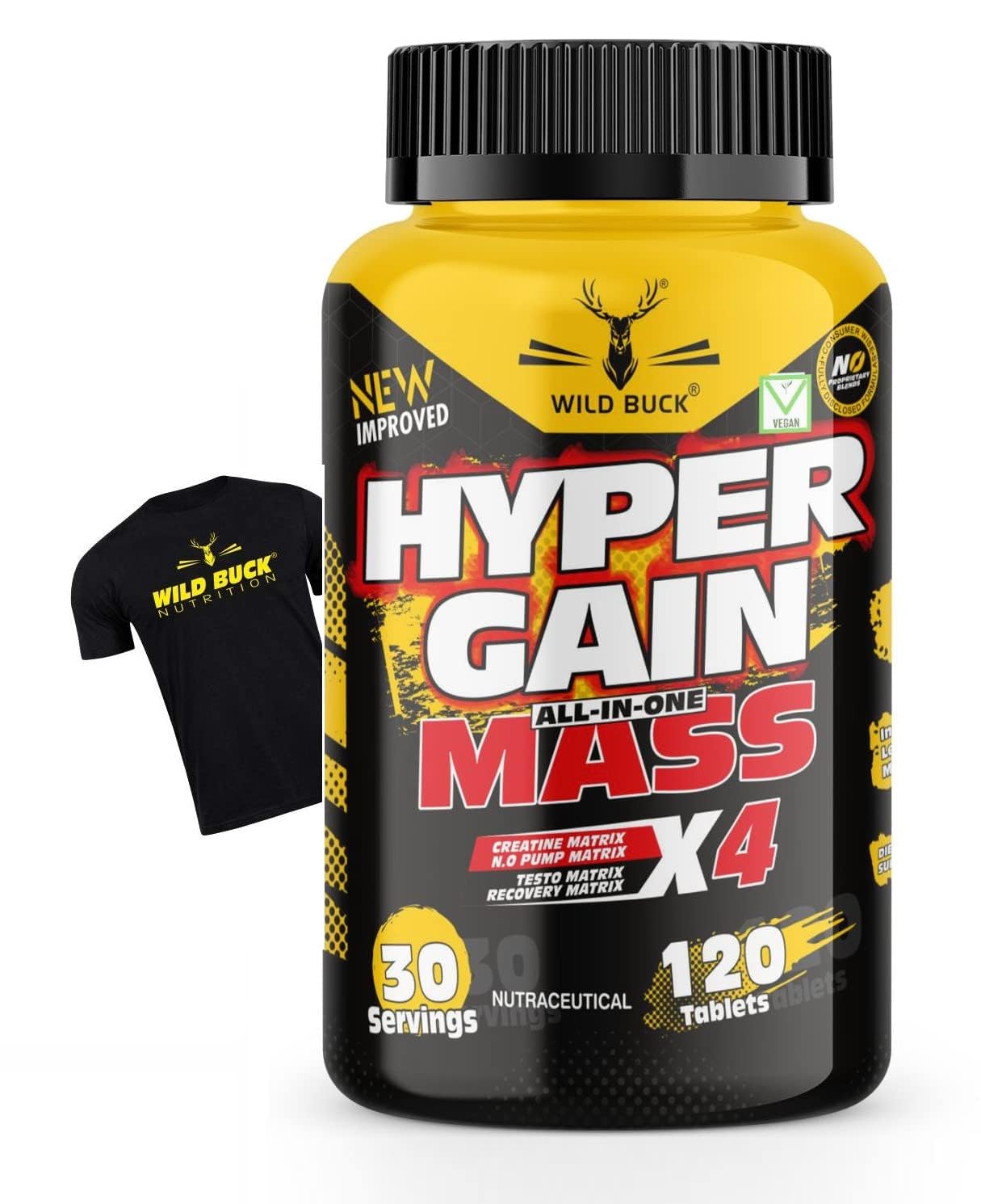 Wild Buck's Hyper Gain Mass is formulated in order to help athletes and body builders to achieve natural anabolic state. It helps Individuals to increase up to 15 lbs of lean muscle mass in 4 weeks. It gives 7X more anabolic than testosterone. It helps increases muscle hardness and strength. it gives zero conversion to estrogen. It helps improves muscle definition and increases muscle pumps.'. It also helps In muscle protein synthesis.