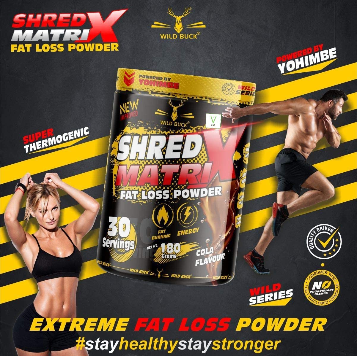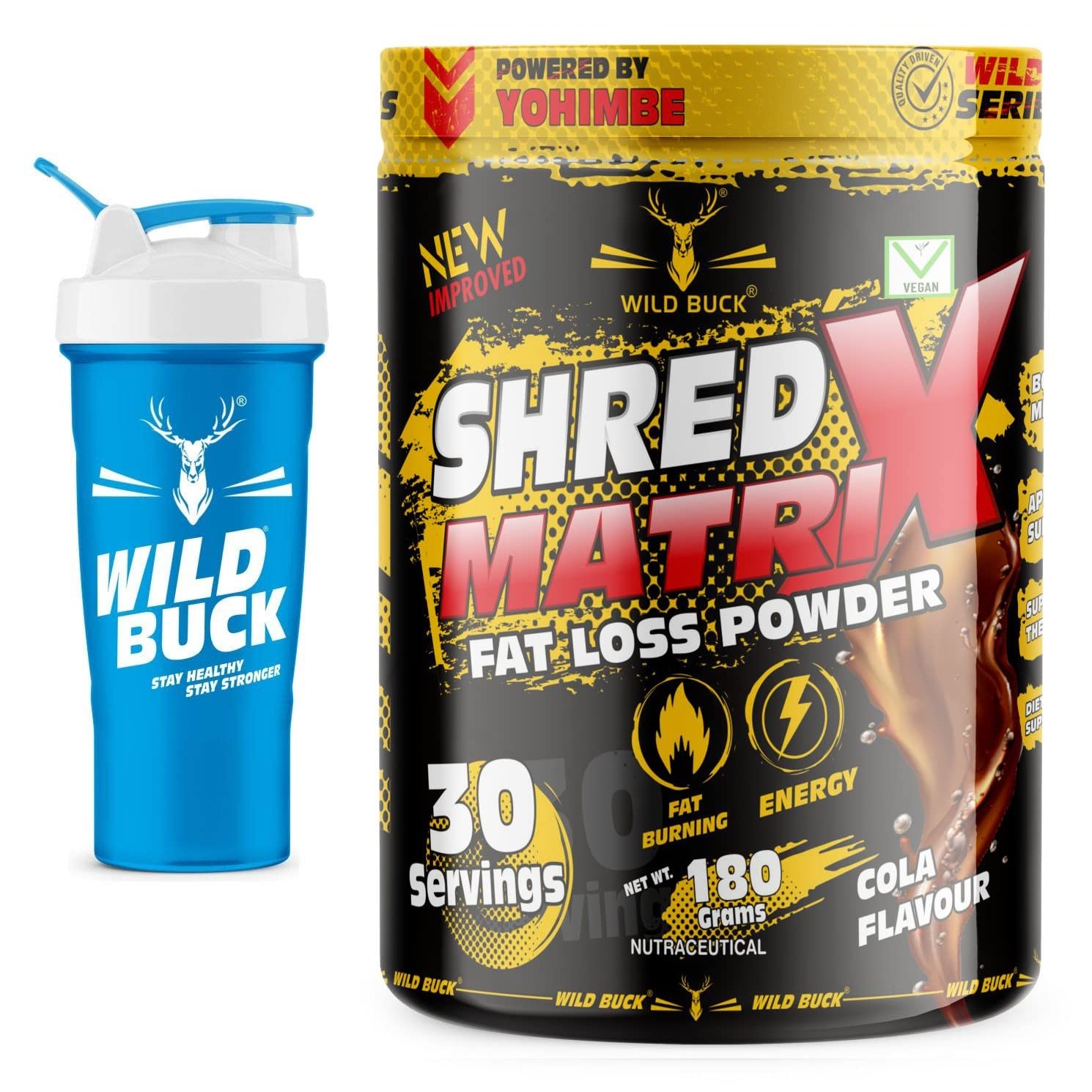 WILD BUCK SHRED MATRIX Fat Loss Powder | Keto Freindly Fat Burner | Helps in Weight Loss | Boosts Metabolism With Natural Ingredients Zero Sugar Free Shaker [30 Servings 180g Cola Flavour]