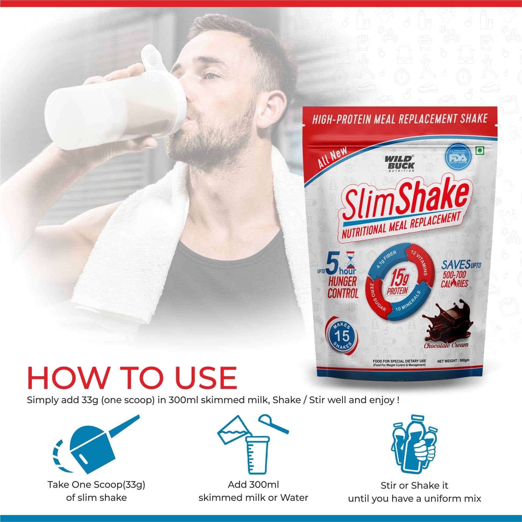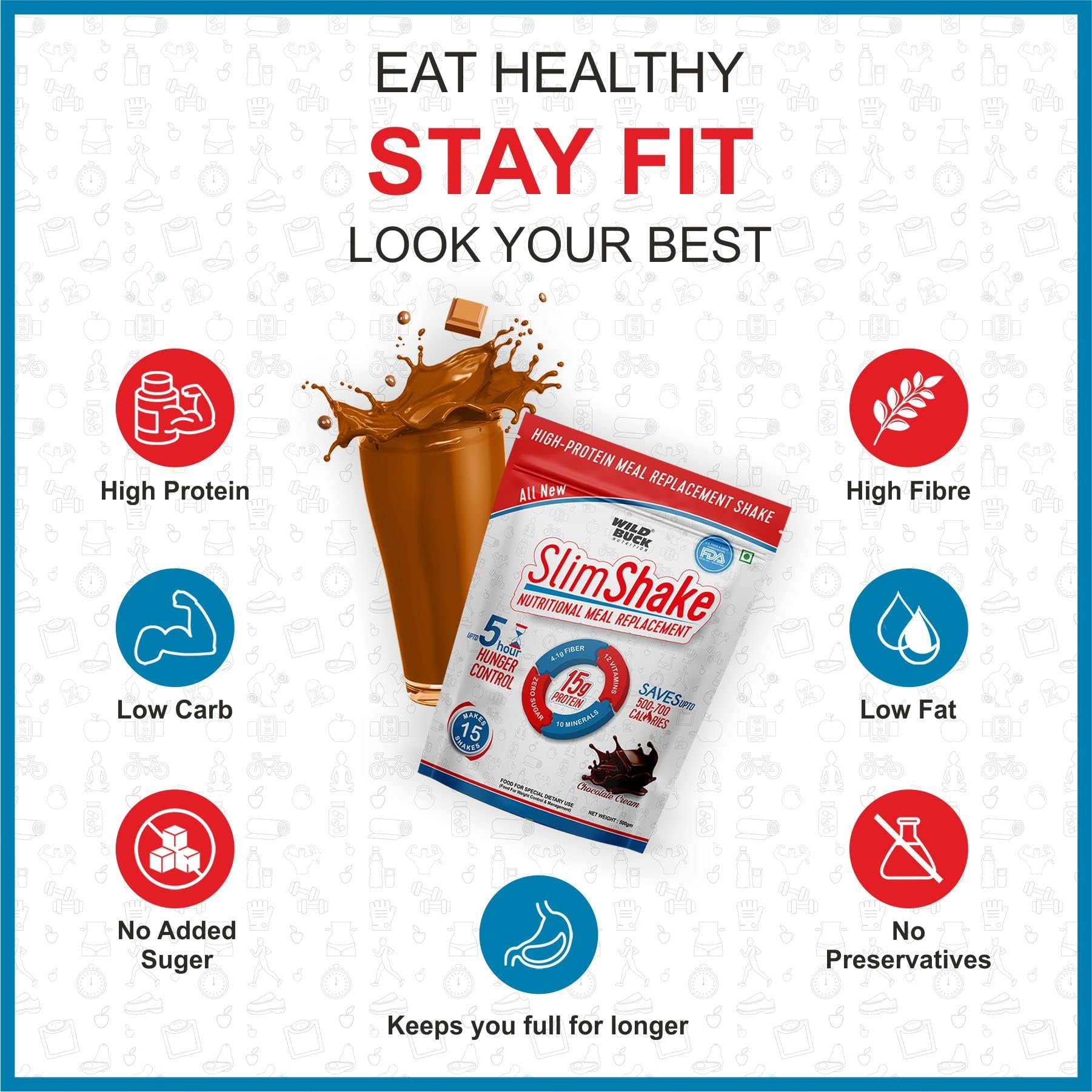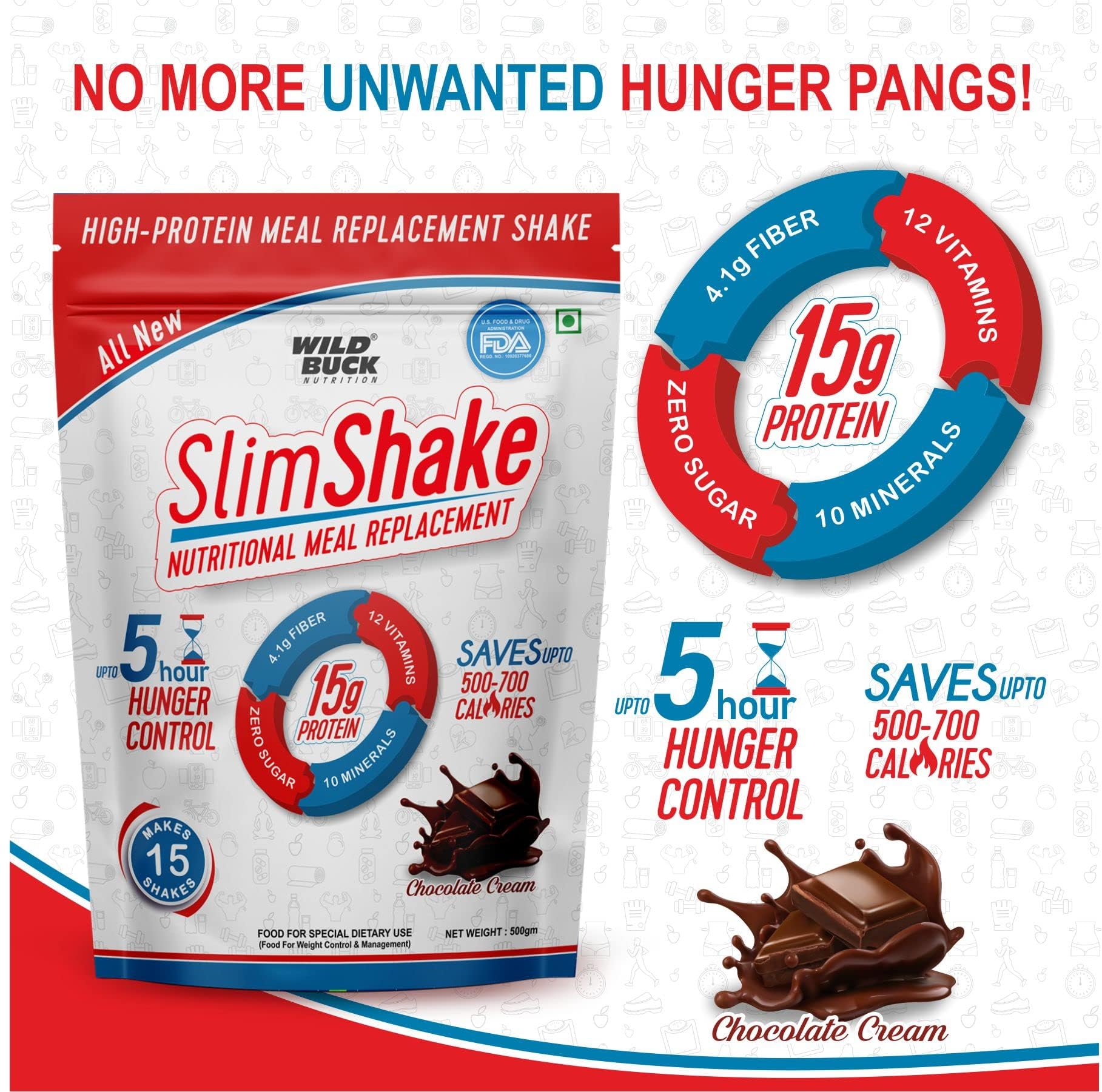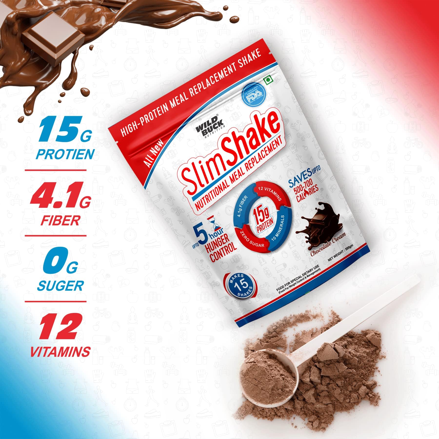 WILD BUCK SlimShake Meal Replacement Shake High Protein Weight Loss & Lean Meal Shake Low Carb Protein Blend Rich in 12 Vitamins & 10 Minerals Weight Control & Management Protein Shake 15g Protein 4.1g Dietary Fiber & Digestive Enzymes | Meal Replacement
