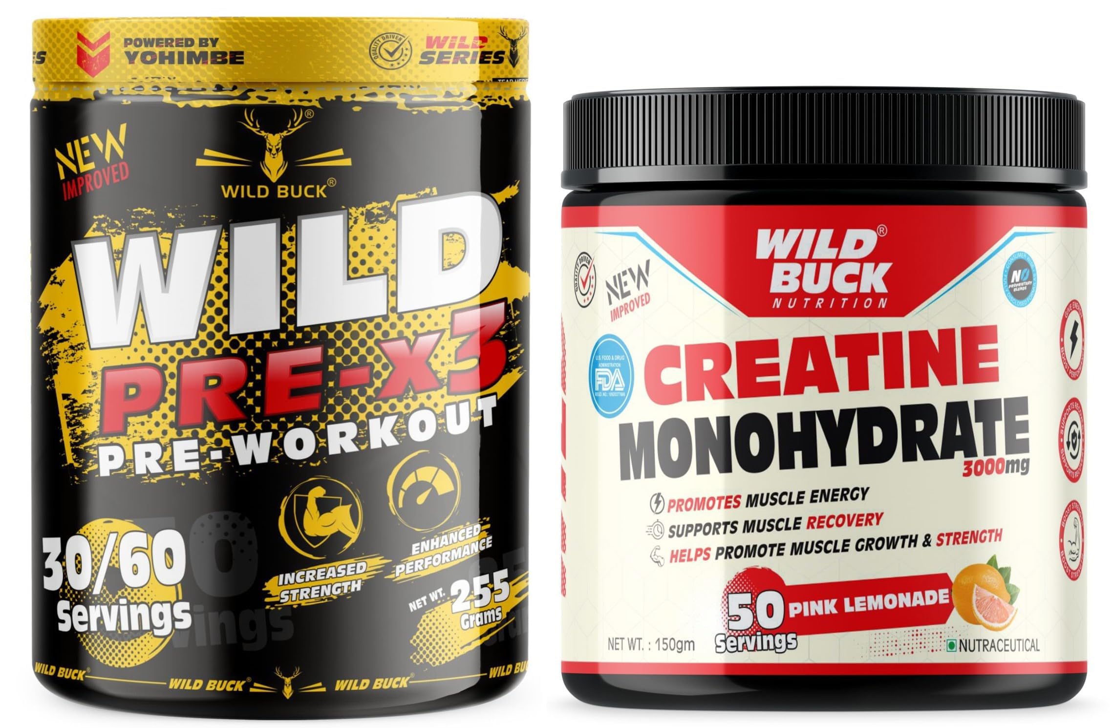 The WILD BUCK Pre-workout : Designed to elevate your energy focus power output and performance levels it will help you power through every training session and prime you for harder heavier and more productive lifts. With so many ingredients dedicated to powering up your results The WILD BUCK Pre-workout is in a league of its own. Stop leaving gains on the table. Start making the most of your workouts today with The WILD BUCK Pre-workout the lifting partner youâve been looking for. Serving: For Insane Workout - Take One Scoop with 150-200ml of water and drink 10-20 minutes before action. For Hardcore Workout - Take half Scoop with 150-200ml of water and drink 10-20 minutes before action. Creatine has become one of the most popular sports supplements among professional and amateur athletes. In the body creatine is converted to creatine phosphate which helps to fuel skeletal muscles and provides support for immediate energy products during high-intensity workouts. Creatine may very well be the single most heavily researched sports supplement available today. Creatine is a key nutrient that occurs naturally in the body and found in some foods. Creatine functions as an energy source in your muscle cells helping to increase strength and reduce fatigue during intense training.