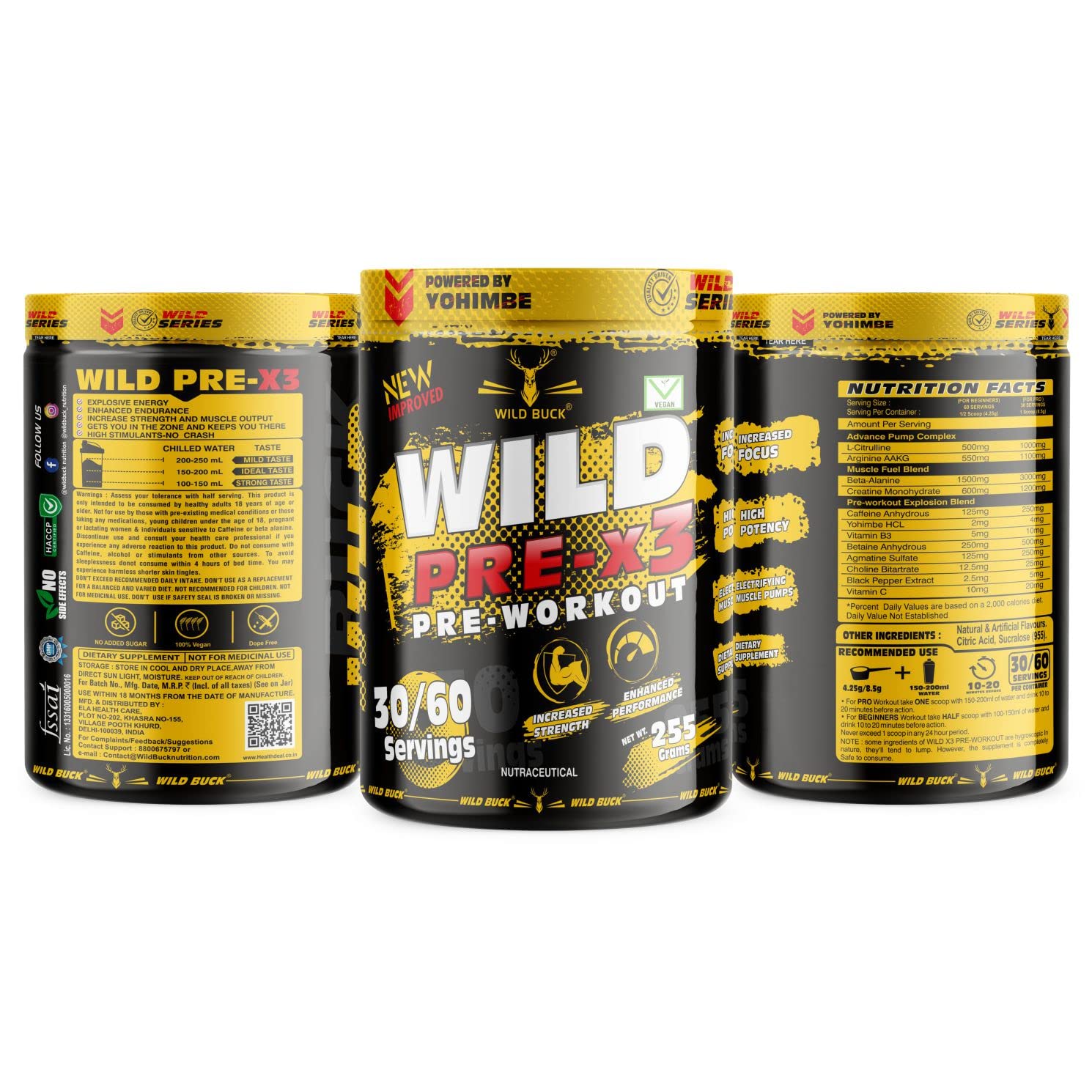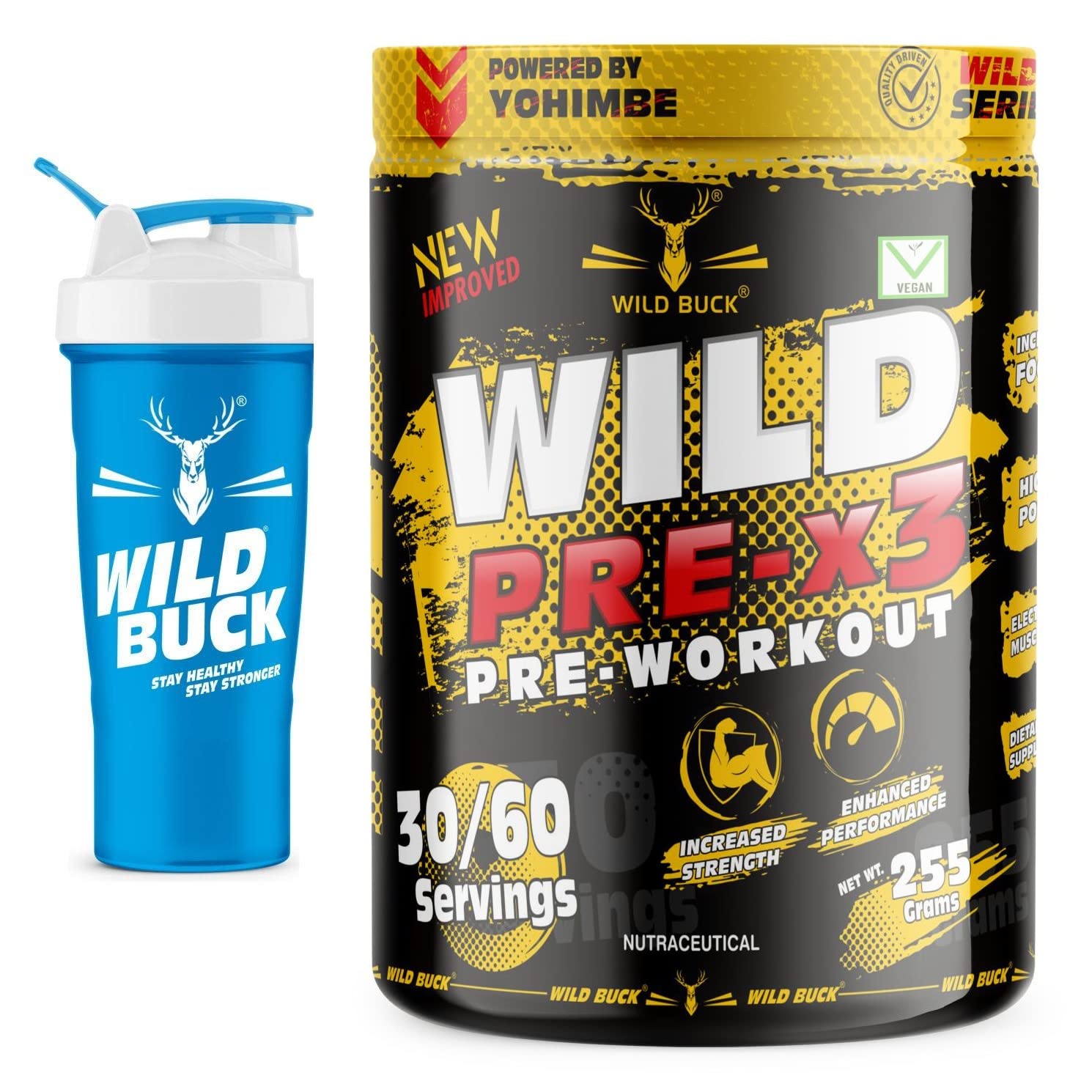 WILD BUCK Wild Pre-X3 Hardcore Pre-Workout Supplement PowderEnergy Drink With Creatine MonohydrateBeta-Alanine - For MenWomen [30-60 ServingsWild Berries255 G]Free Shaker2 Count