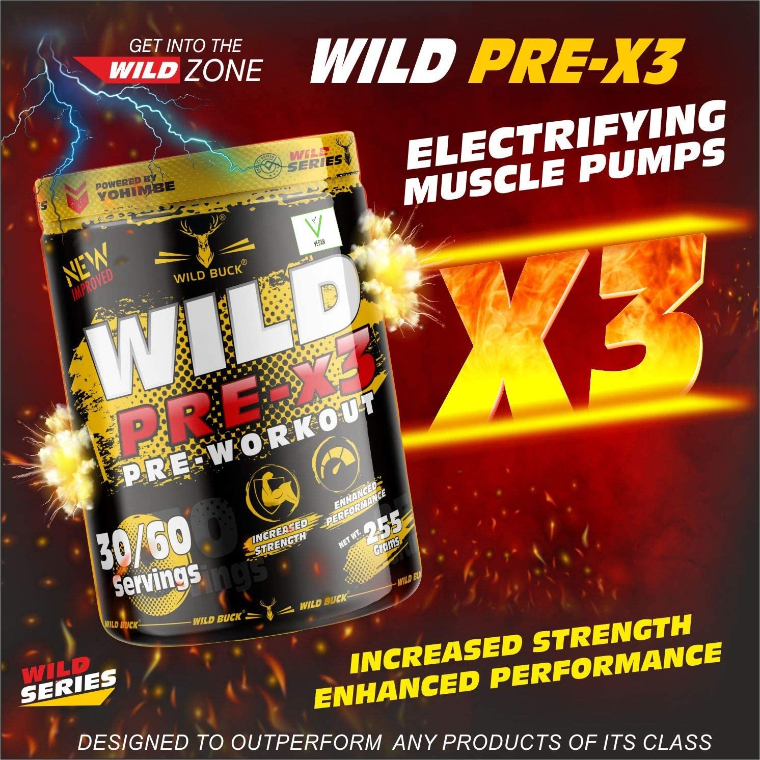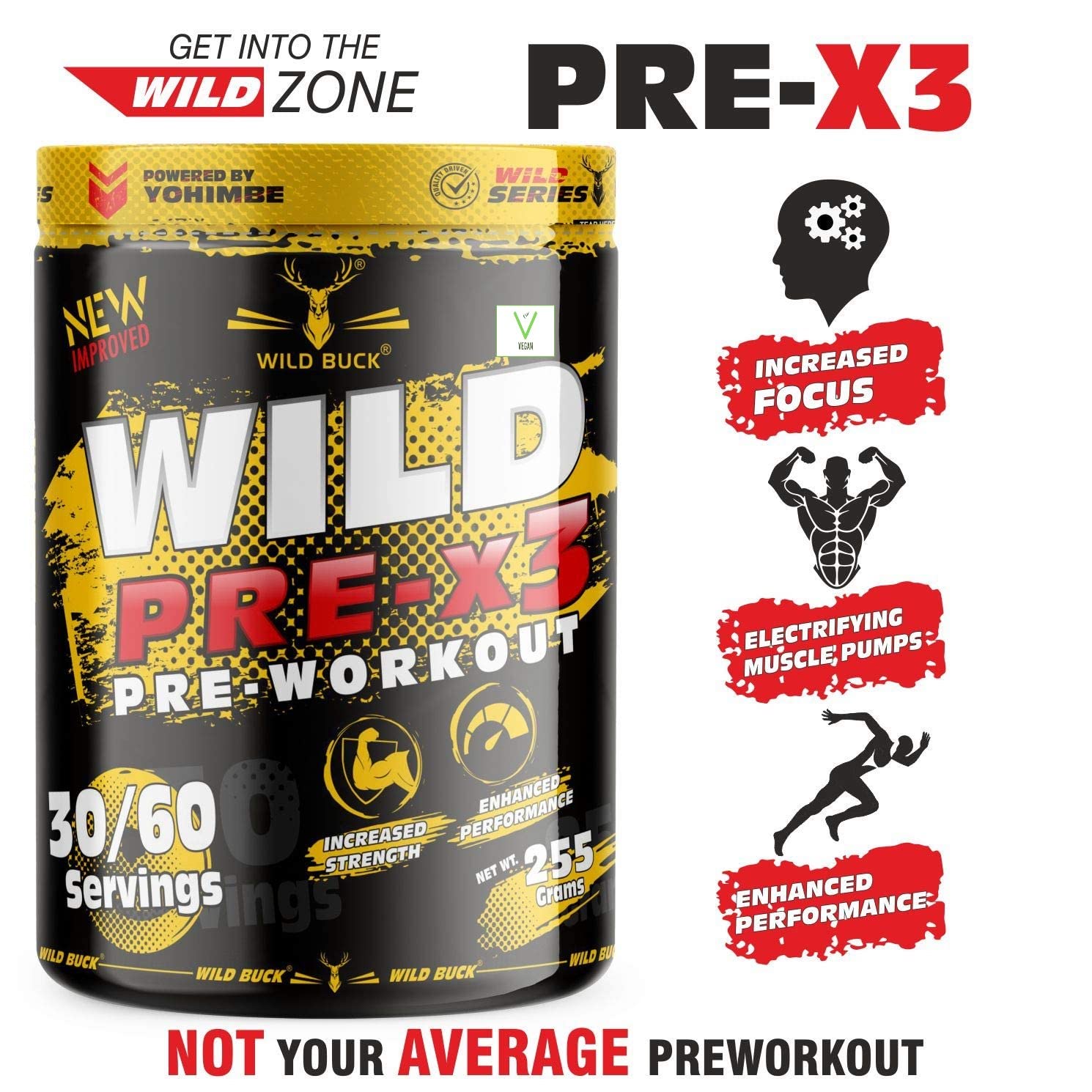 The WILD BUCK : Advanced Pre-workout formulation designed for Intense Energy Maximum Focus Amplified Pumps Explosive Power Support Cognitive Function Enhances Mood Expand Muscle Endurance and Help to Delay Fatigue