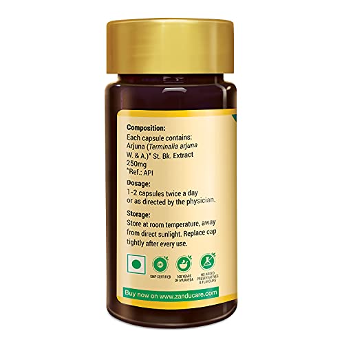 Zandu Arjuna Capsules - Helps to Maintain a Healthy Heart while Helping Keep Diabetes & Cholesterol Under Check also Promotes Good Urinary Health - Pack of 60 Veg capsules