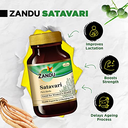 Zandu Satavari Capsule is an Ayurvedic supplement made using pure extracts of Satavari (Shatavari). Especially beneficial for women's health satavari herb is known very useful to improve milk production in lactating mothers. Being a rasayan Satavari boosts strength in women.