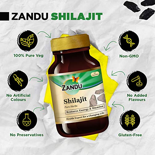 Stress Buster & Energy Booster: Zandu Shilajit Capsule is made using extracts of pure Shilajit that helps fight chronic fatigue promote energy.