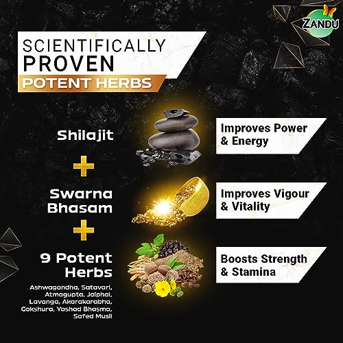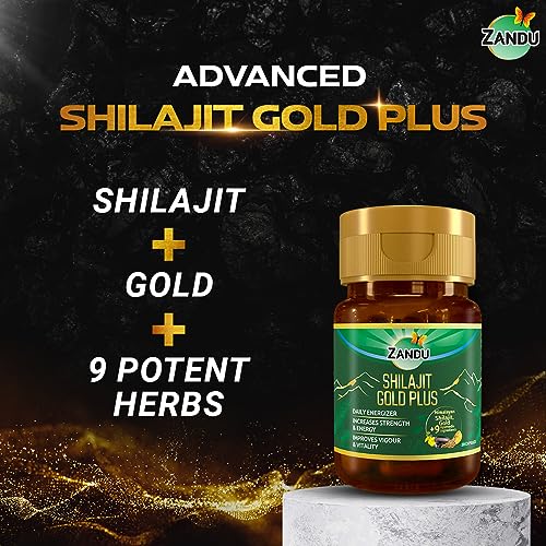 Zandu Shilajit Gold Plus| Scientifically Tested Advanced Formula| Made Using 100% Pure Himalayan Shilajit, Gold & 9 Ayurvedic Herbs |Enhances Strength, Stamina, vigour, Vitality and Power | 20 Caps