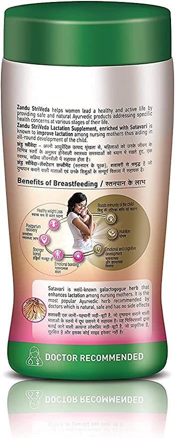• Zandu Striveda Satavari Lactation Supplement is 100% Ayurvedic preparation is natural and safe and has no side effects. It is recommended by doctors