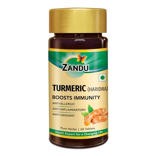 Elevate your immunity naturally with Zandu Turmeric Tablets meticulously crafted with the extract of Turmeric to provide a potent shield against illnesses. Turmeric or Haldi revered since ancient times for its myriad health benefits takes center stage in these tablets. Renowned for its immunomodulatory antioxidant antimicrobial anti-inflammatory analgesic and anti-allergic properties Turmeric offers comprehensive support for overall well-being. Harnessing the power of pure Turmeric extract Zandu Turmeric Tablets serve as a powerhouse for immunity enhancement respiratory health maintenance and blood purification. By boosting immunity these tablets fortify your body's natural defenses safeguarding against common ailments and skin-related issues. Additionally they support respiratory health aiding in combating coughs and colds effectively. Furthermore their blood-purifying properties contribute to overall health by detoxifying the system and promoting vitality. Experience the benefits of centuries-old Ayurvedic wisdom with Zandu Turmeric Tablets an Ayurvedic effective solution for enhancing immunity and promoting holistic wellness. With each tablet packed with the goodness of Turmeric embark on a journey towards a healthier and stronger you.