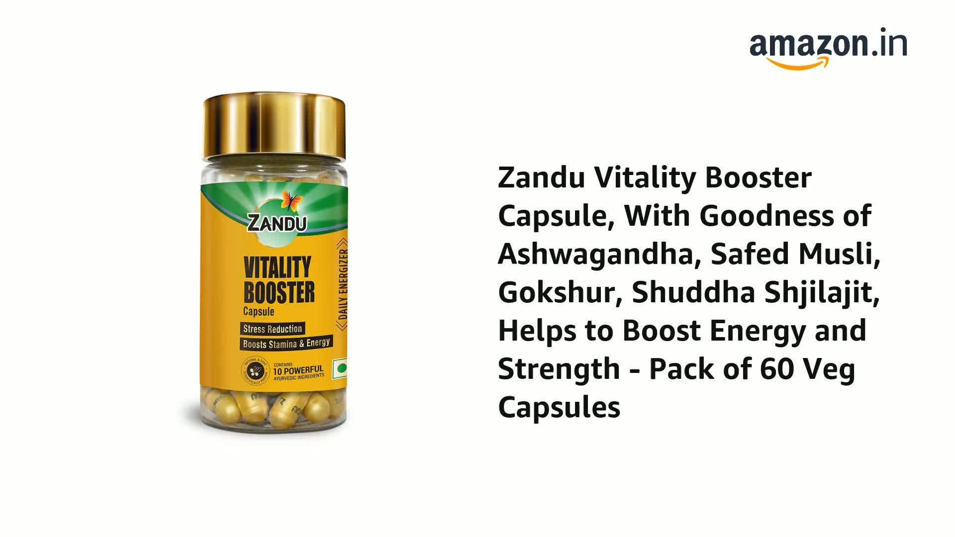 Zandu Vitality Booster is enriched with ten herbs and minerals including Ashwagandha Shilajit Saffron all known for their numerous health benefits. This product helps reduce stress and anxiety by reducing the cortisol levels while boosting energy and stamina. Regular use of this product minimises lethargy and helps lead an active lifestyle. It improves your physical and mental performance.