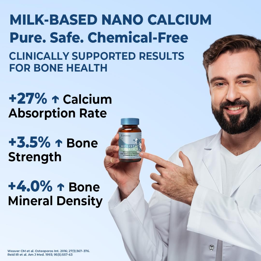 ZEROHARM Holistic Calcium Tablets High Absorbption Milk-Based Calcium Supplement with Vitamin D3 K2-7 Magnesium Phosphorous Supports Bone Strength & Joint Health For Men & Women 120 Tablets