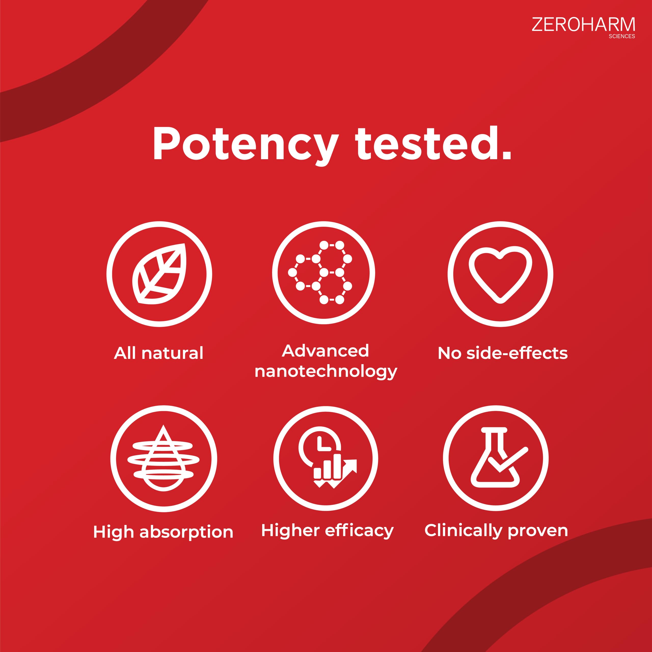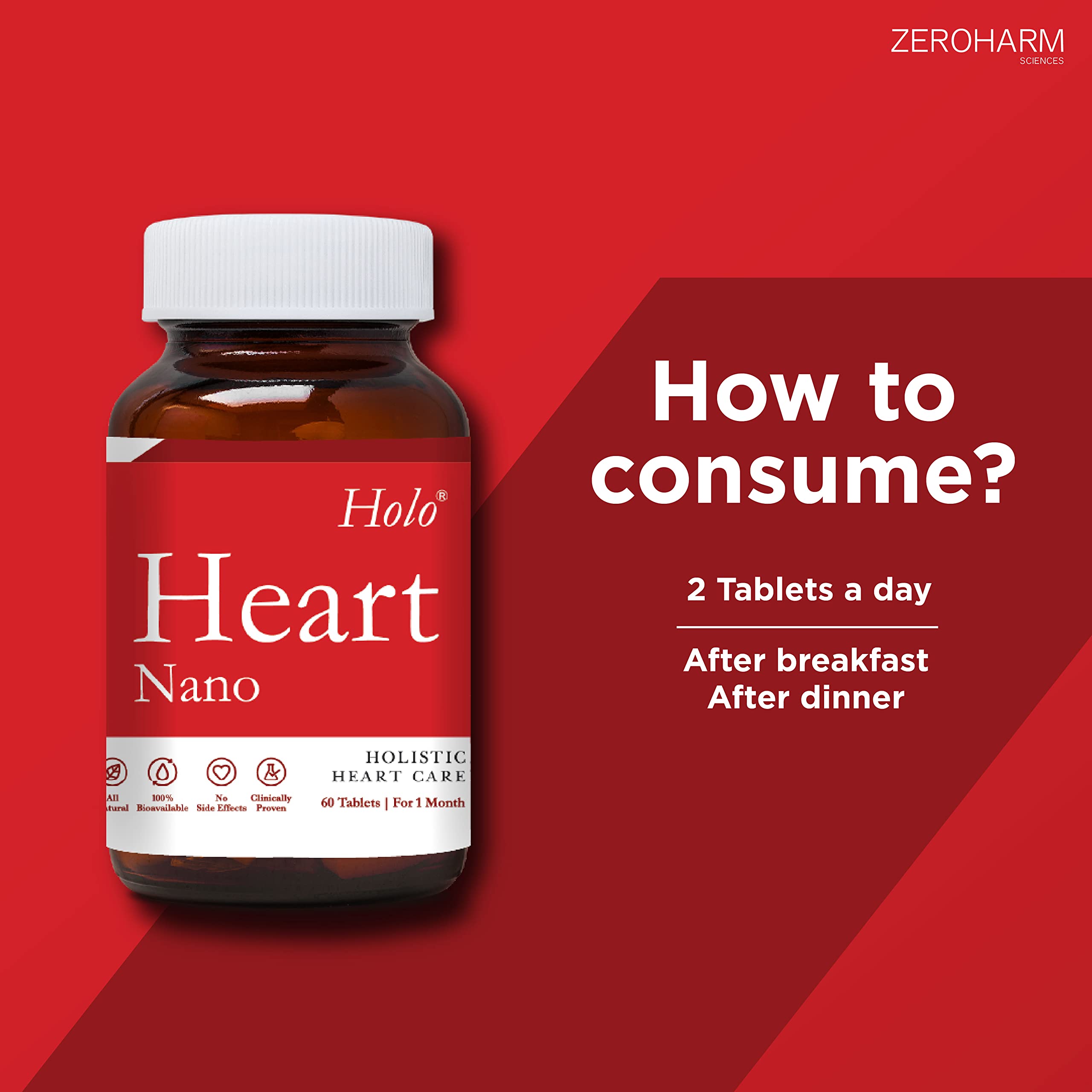 A SMALL DOSE CAN MAKE A BIG IMPACT Holo Heart comes with nano-formulated ingredients. These nanoparticles are readily absorbed by your body delivering maximum benefits with a much lower dosage. It is curated in international labs and tested to be safe for
