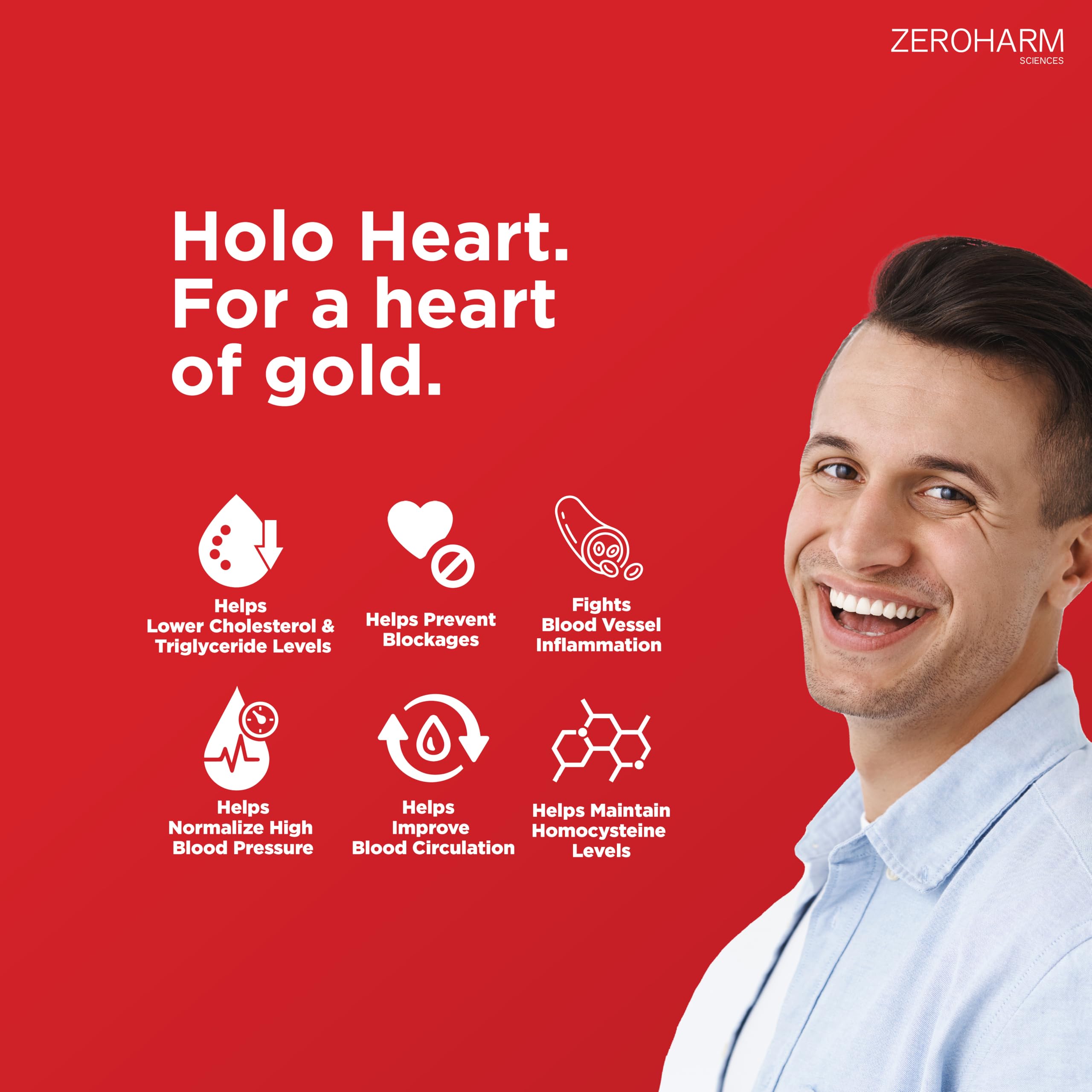 Holo Heart by ZeroHarm is a plant-based science-backed supplement. Powered with a unique formulation of rare natural extracts - Shuddha Guggulu Arjun chhal Black garlic powder Plant sterol complex Cinnamon and Berberine. Supports homocysteine levels stren