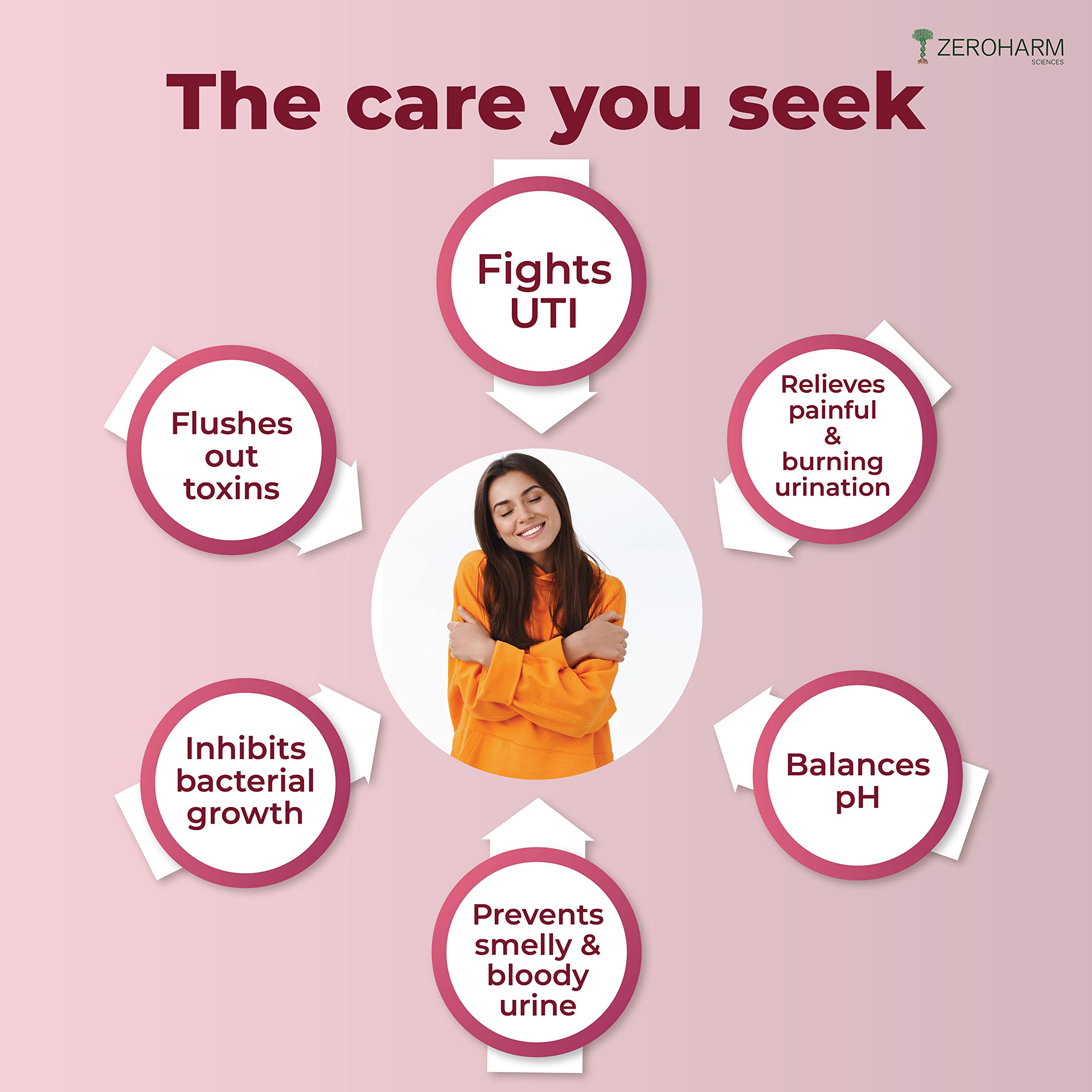 ZEROHARM Holo UTI tablets | For men & women | Plant-based UTI supplements | Fights UTI | Inhibits bacterial growth | Flushes out toxins | Balances pH | Maintains urological function | 120 veg tablets.