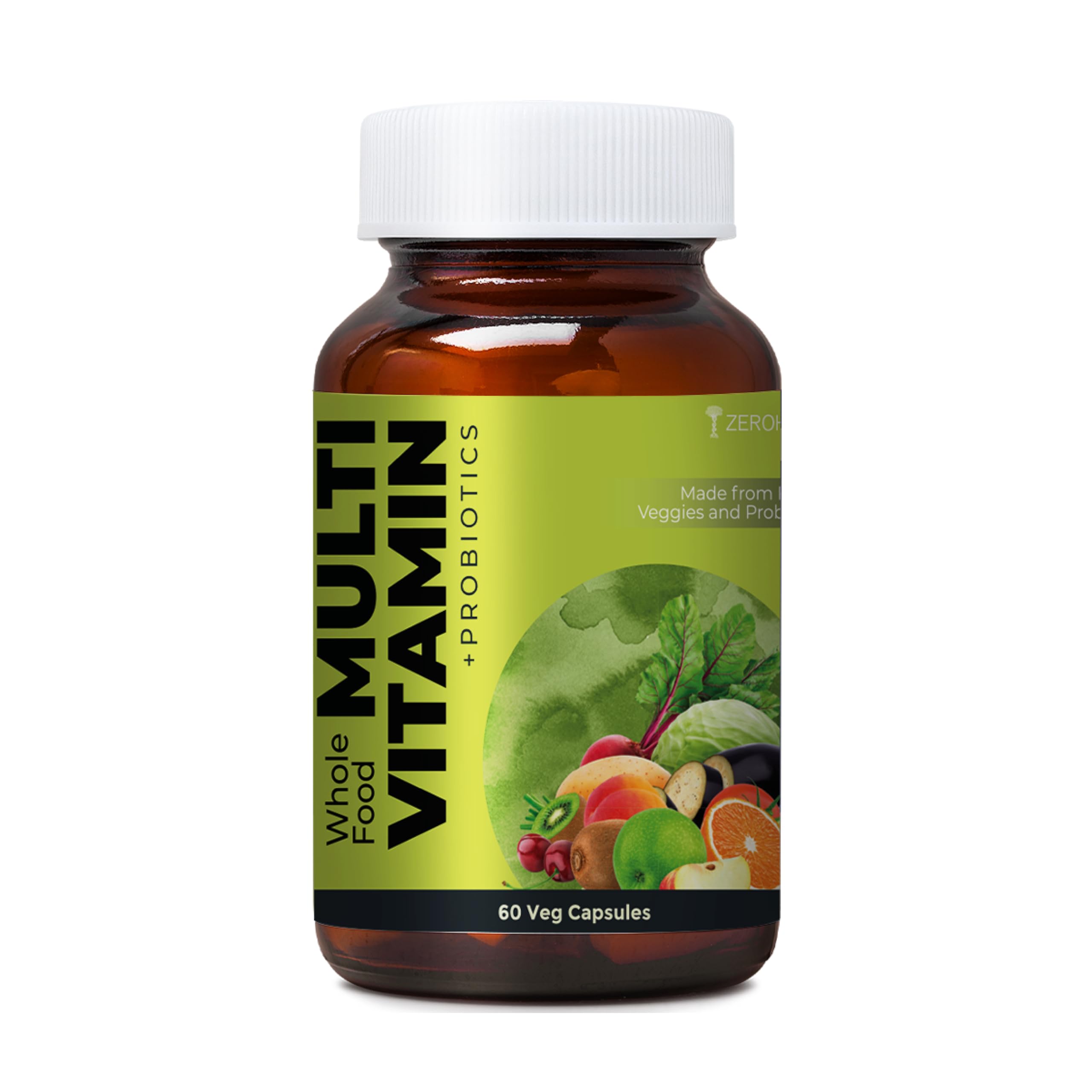ZEROHARM Multivitamin + Probiotics for Men & Women - Plant-Based Daily Supplement with 25 Probiotic Strains - Boosts Immunity Energy & Digestion - Whole Food Vitamins & Minerals - 60 Veg Capsules