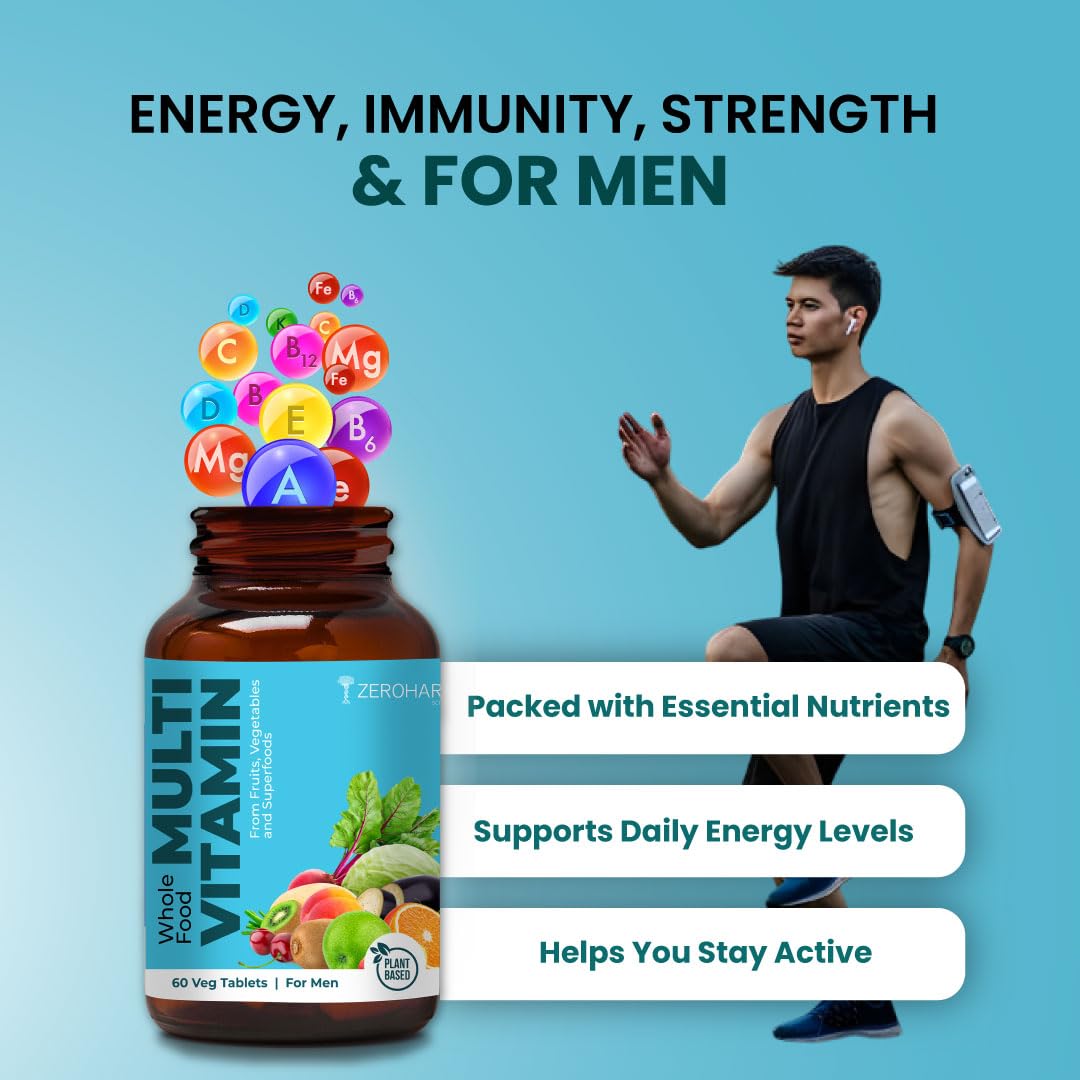 HomeHealth & PersonalDiet & NutritionHealth SupplementsZEROHARM Multivitamin Tablets for Men - Whole Food Multivitaminn With Essentail Vitamins A B C D E & Iron Zinc Magnesium - Daily Supplements for Immunity & Energy Support - 60 Veg Tablets