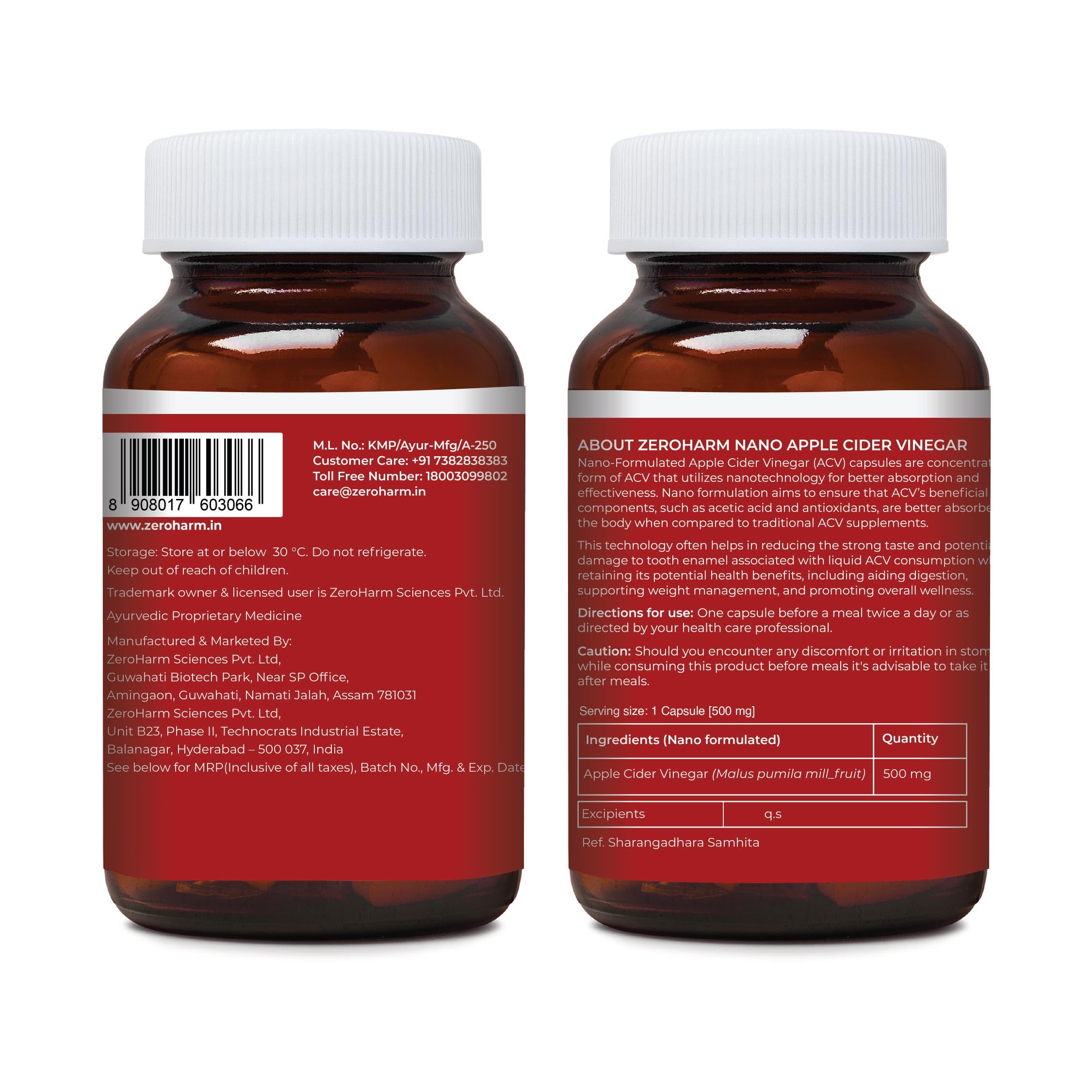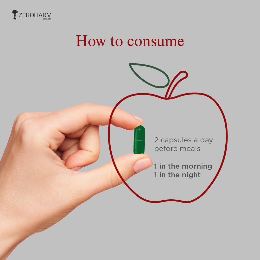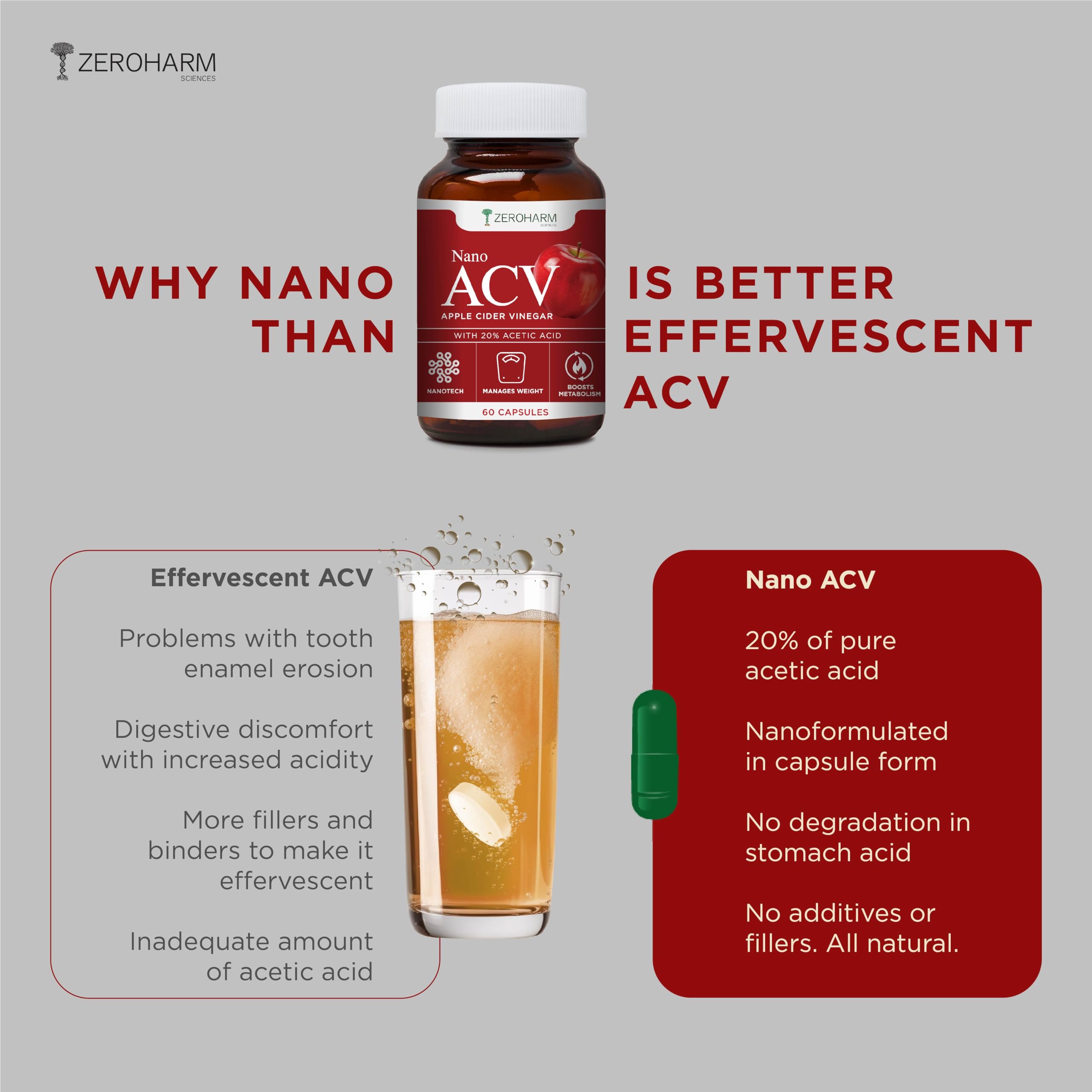 ZeroHarm Nano ACV with 20% Acetic Acid from Apple Cider Vinegar |Manages Weight | Inhibits the Enzyme ATP-Citrate Lyase | Regulates Glucose Metabolism | Increasing Postprandial Satiety | 60 Caps