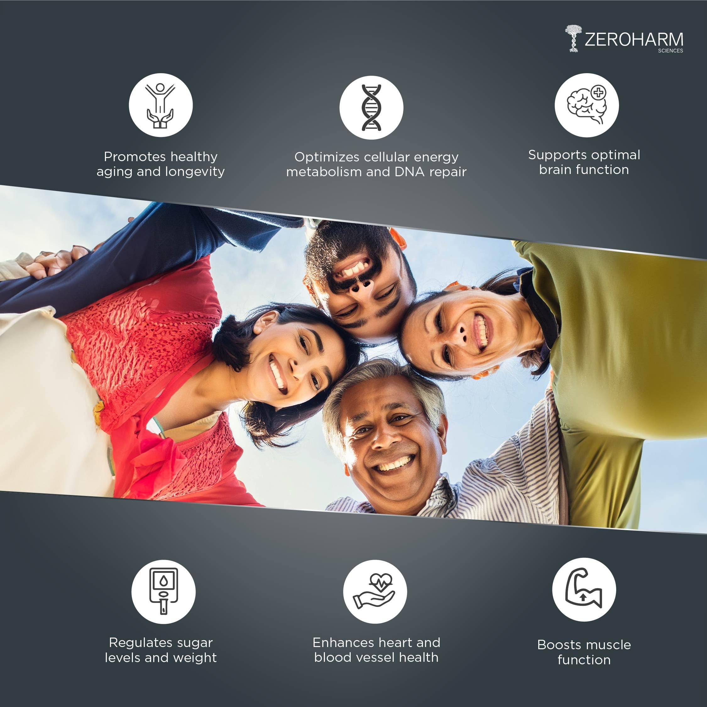 Supports Longevity: NMN supports cellular health enhances muscle function and promotes longevity by maintaining NAD+ levels.