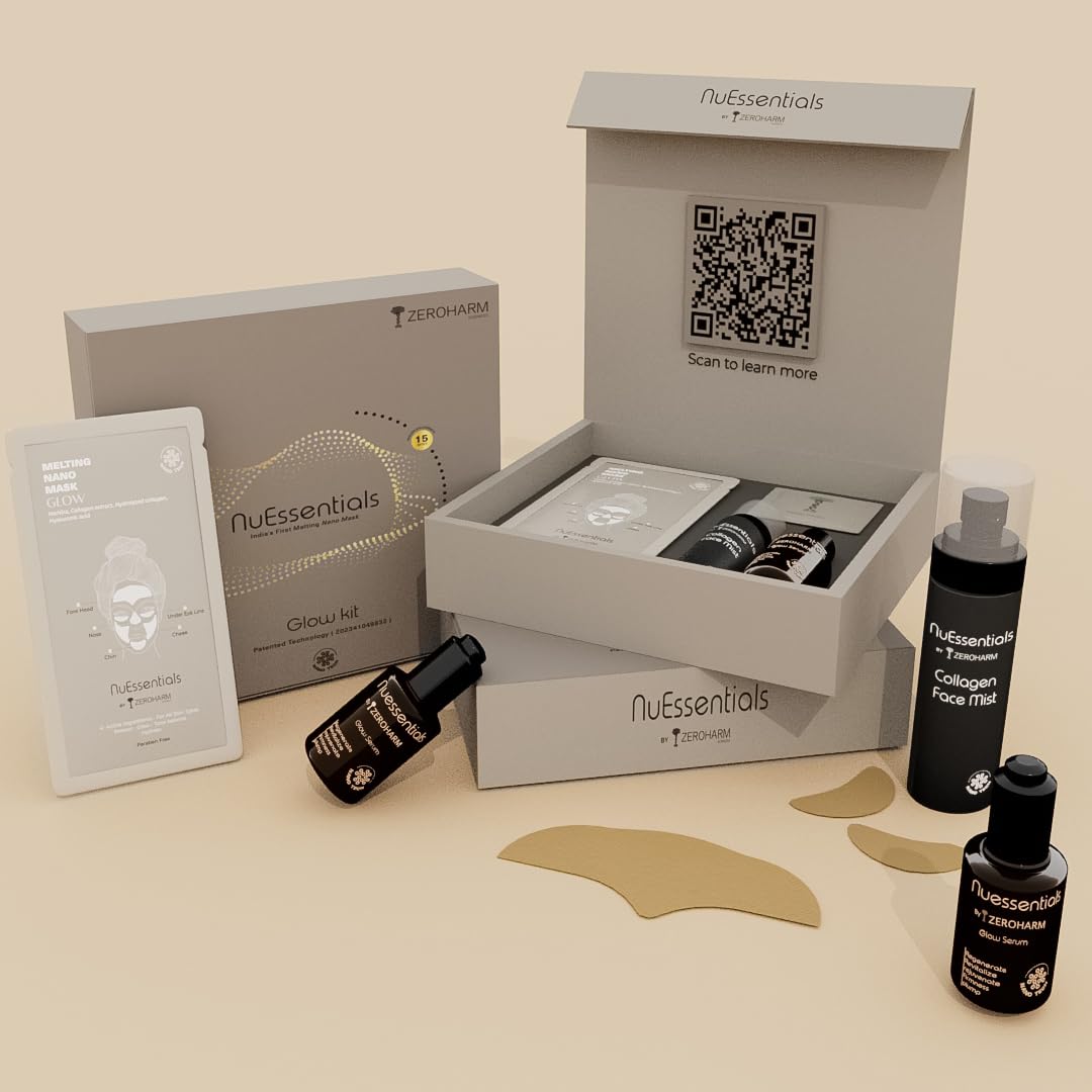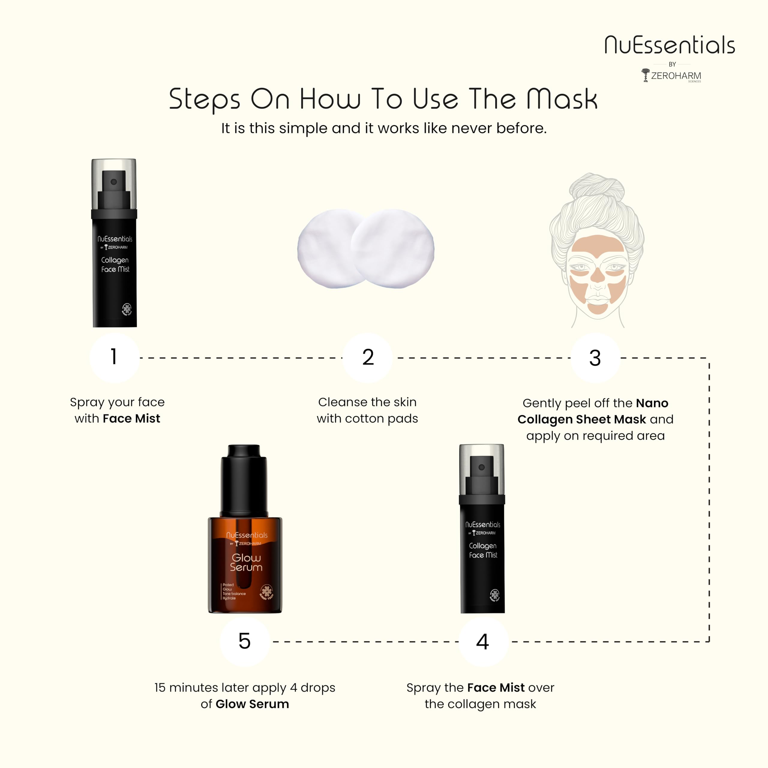 ZEROHARM Nuessentials Glow Mask Kit | India's 1St Nano Collagen Mask | Deep Penetration Into The Epidermis And Dermal Layers| Improved Skin Texture | Evens Skin Tone | Suitable For All Skin Types.