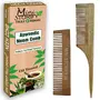 Mini Storify Truly Organic Kacchi Neem Wood Comb - Pack of 2 - Handmade Wooden Combs for Women and Men Tail and Pocket Comb