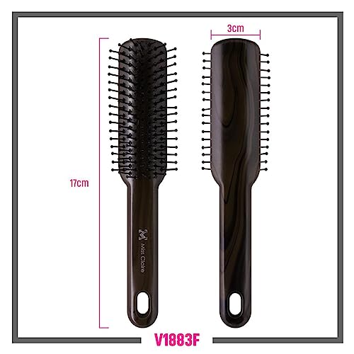 This brush is ideal for detangling smoothening and adding volume and shine to your hair. It comes with ball-tipped bristles that easily penetrate the hair stimulates and massage the scalp and reduce snags and tangles. Suitable for medium to long hair. We have a wide range of brushes designed with different types of finishes. They come with different handles such as rubberized rubber grip or wooden handle. The brushes have thin or thick bristles made of nylon or wooden nodules. These wavy bristles help to smooth and gently detangle hair easily. This type of bristle creates less overall tension on the hair reducing breakage flyaways and static. This design keeps hair more healthy overall.This classic-shaped brush is perfect for travel and daily brushing at home.