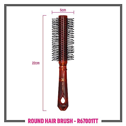 Our round hair brush is made from durable and lightweight plastic ensuring long-lasting performance. The brush is designed to withstand everyday use without compromising its effectiveness. The brush features a combination of soft and flexible bristles which glide through your hair effortlessly minimizing breakage and tugging. These bristles effectively detangle knots and evenly distribute natural oils from the scalp promoting healthier-looking hair. The brush handle is ergonomically designed for a comfortable grip and easy maneuverability. It allows for precise control while styling whether you're creating voluminous curls or a sleek straight look. With its round barrel design this brush is perfect for achieving various hairstyles. Use it to add volume create bouncy curls or achieve a salon-worthy blowout at home. The brush also works well with both wet and dry hair. Our plastic round hair brush is heat-resistant making it suitable for use with hair dryers or heat-styling tools. The brush can withstand elevated temperatures allowing you to achieve your desired look with ease. The lightweight construction of the brush makes it ideal for travel ensuring you can maintain your desired hairstyle wherever you go. Slip it into your bag or suitcase effortlessly and enjoy beautiful hair on the go.