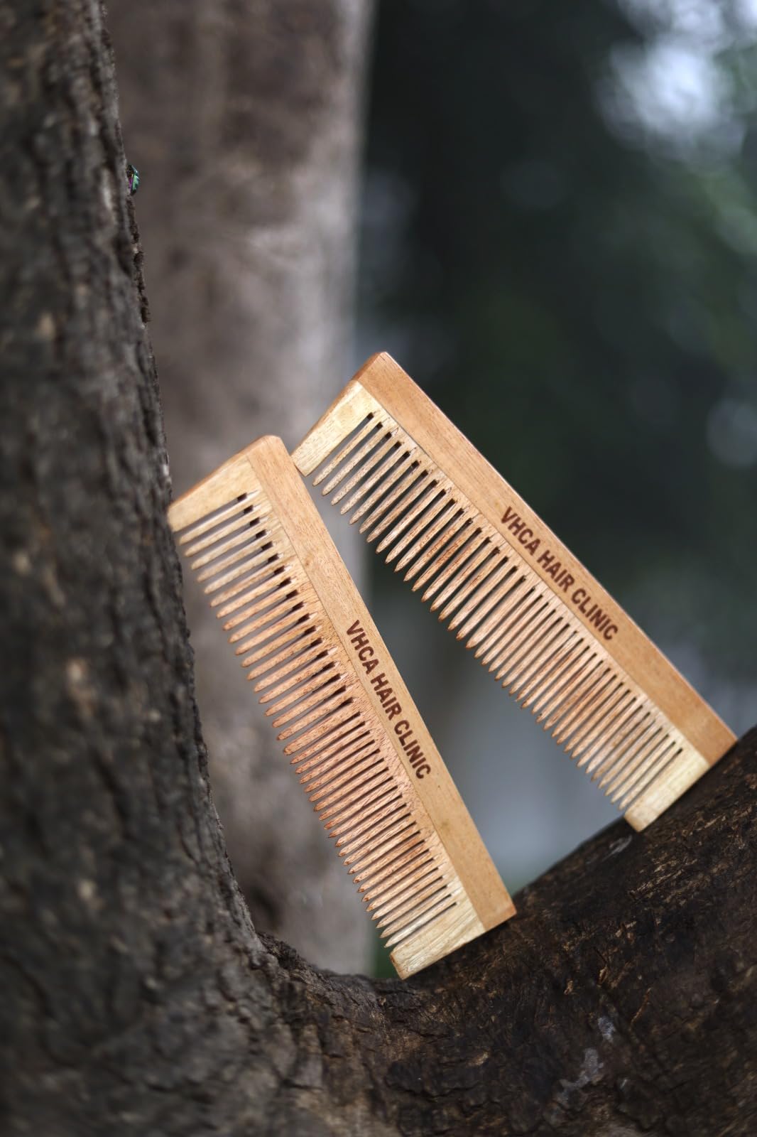 Natural Hair Health: r-Poid Herbal Neem Comb crafted from young juicy neem wood and infused with 17 herbs promotes hair growth controls hair fall and combats dandruff. Ideal for both men and women.Oil & Herb Treated: Neem Comb Is Pre-Soaked & Treated With Neem Oil Coconut Oil Castor Oil Sesame Oil Neem Leaves Bhringraj Amla Curry Leaves And Other Herbs & Oils. 17 Herbs Used To Soak & Treat The Comb. This Kachi Neem Wooden Comb helps you to make your hair tangle-free and also helps you to style your hair with zero hair fall. This VHCA Wooden Neem Comb helps you to remove dandruff from your hair. Pack of 2