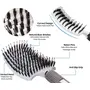 The curved and oversized shape functions by allowing optimum contact points and angles with the scalp which can hold more hair altogether useful to massage scalp in many directions and accelerate blood circulation.