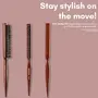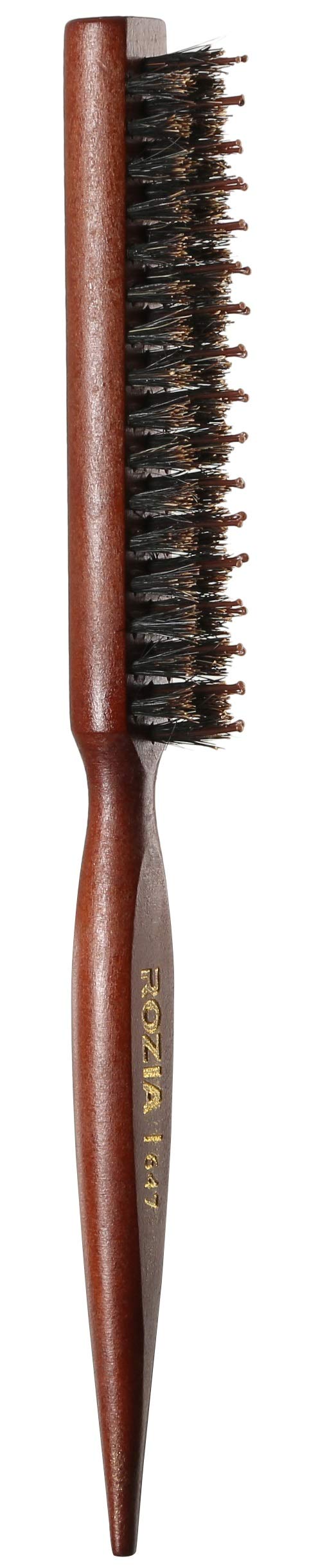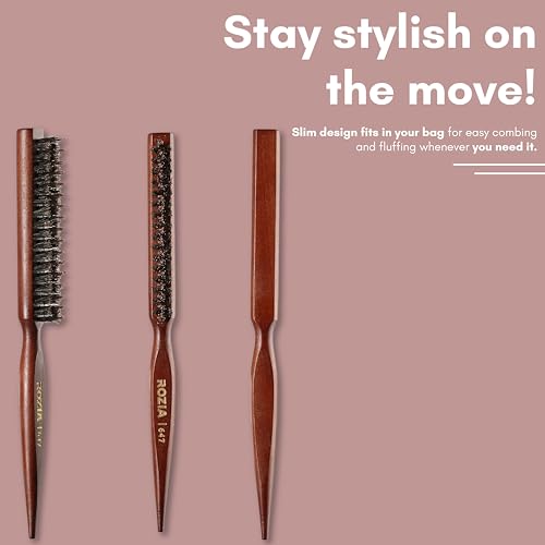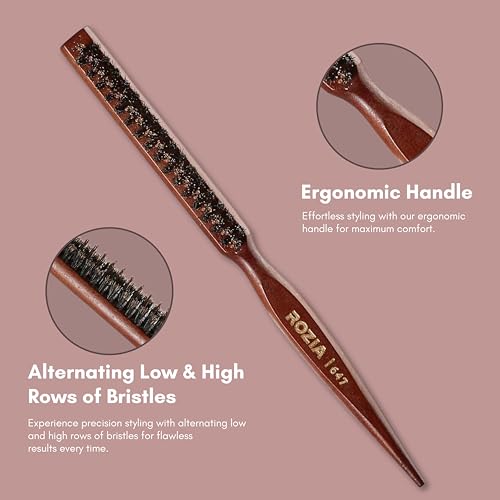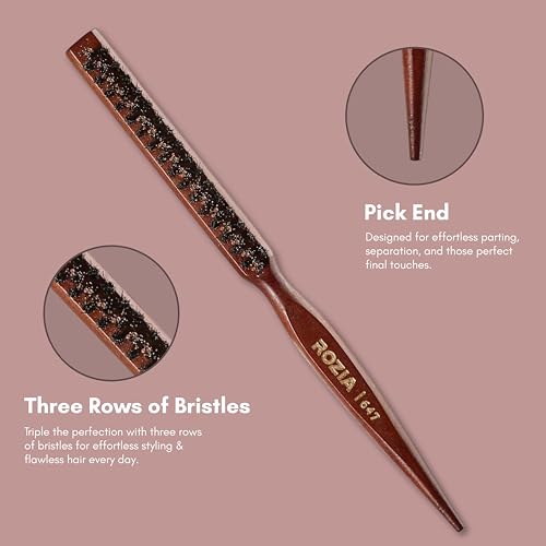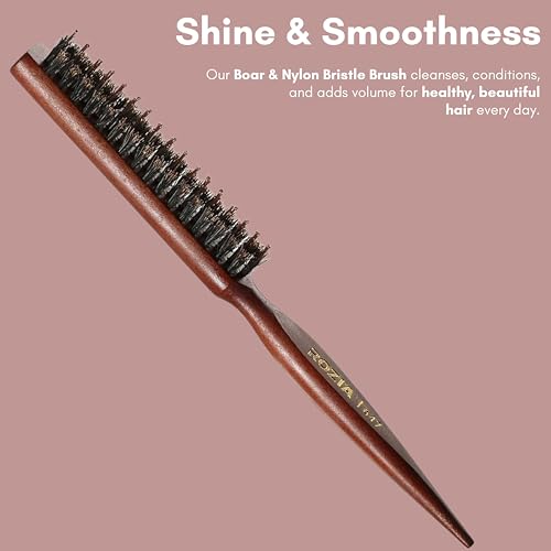 Boar & nylon bristle combination short boar bristles to create tension and shine and tourmaline enhanced nylon bristles easily move through hair boar bristles brushing cleans and conditions hair and distribute hair's natural oils over the hair shaft. Teasing brush & comb in one improves styling control with the combination of boar and nylon bristles tapered handle features a pick end for parting St and final touches. Lightweight wood body: sleek solid wood extended handle comfortable and sturdy to handle any textured hair. Lightweight and perfect for travel.
