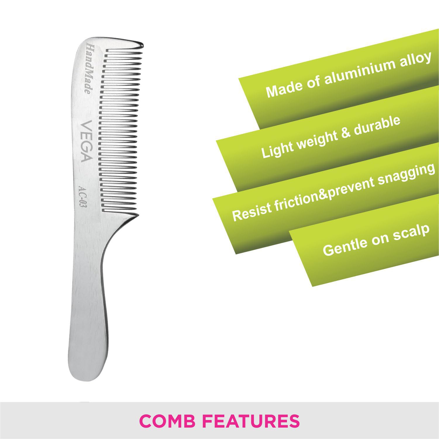 Vega Aluminium Grooming Hair Comb - 1 Pcs (Ship from India)