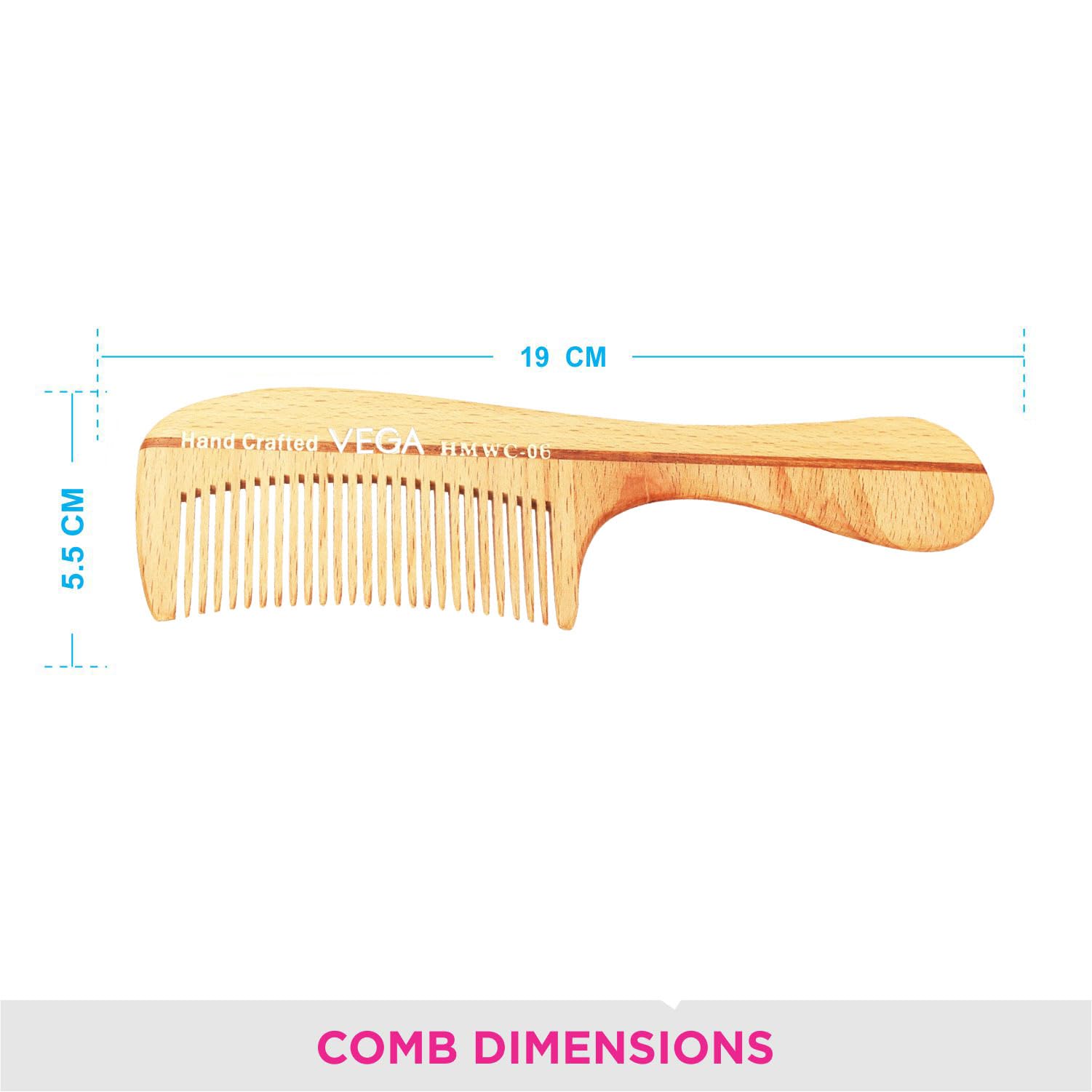 Vega - A one stop shop for head to toe Beauty care accessories . Wooden combs are one of the healthiest ways of combing your hair. The wooden teeth have rounded tips which have a gentle massaging effect on your scalp. This massaging effect stimulates natural oils in your hair cuticles and create natural volume and lustre. The wooden combs reduce hair breakage when you run it through your hair.